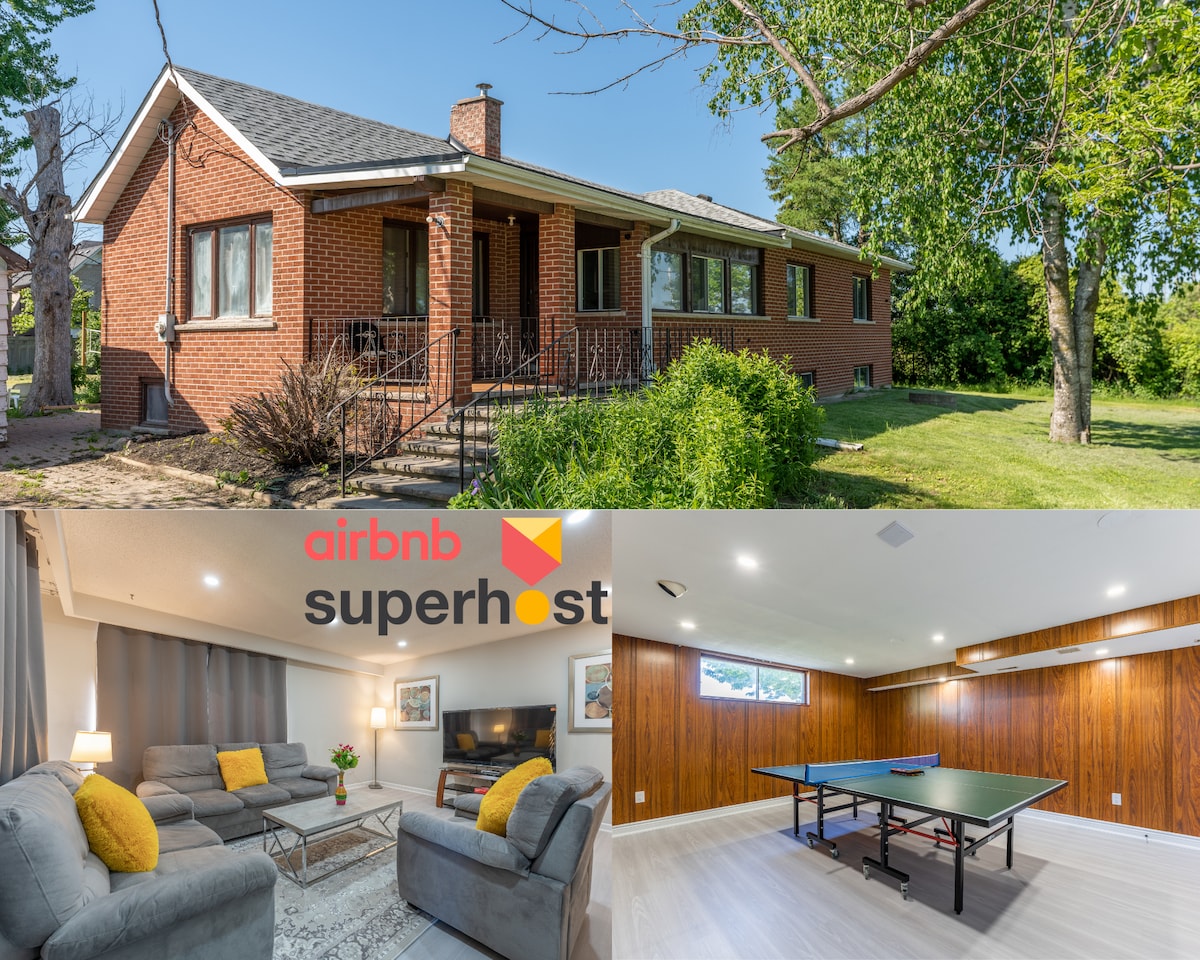 ⭐Experience the perfect blend of rural charm and urban convenience at our spacious, family-friendly & rustic home in Brampton. ✔ 5 BR, 2 Bath ✔ Fun Amenities: Ping Pong Table & Volleyball Net ✔ Large Backyard with Outdoor Furniture & BBQ ✔ Fully Equipped Kitchen (no dishwasher) ✔ Cozy Family Room with TV for Relaxation ✔ Comfortable Bedrooms with Premium Linens Nearby places for winter fun activities ✔ Chinguacousy Park ✔ Heart Lake Conservation Area Book your stay with confidence!