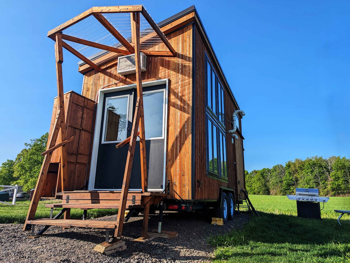 Escape to the Countryside – A Thoughtfully Designed Retreat Experience the perfect blend of comfort and sustainability in this beautifully designed getaway, created as an experiment off-grid living. Features: Kitchen (stovetop, wall oven, double sink & fridge) Full bathroom with cedar shower, sink, indoor Indoor COMPOSTING toilet Washer, radiant heating & AC for year-round comfort King Loft & skylight for magical stargazing