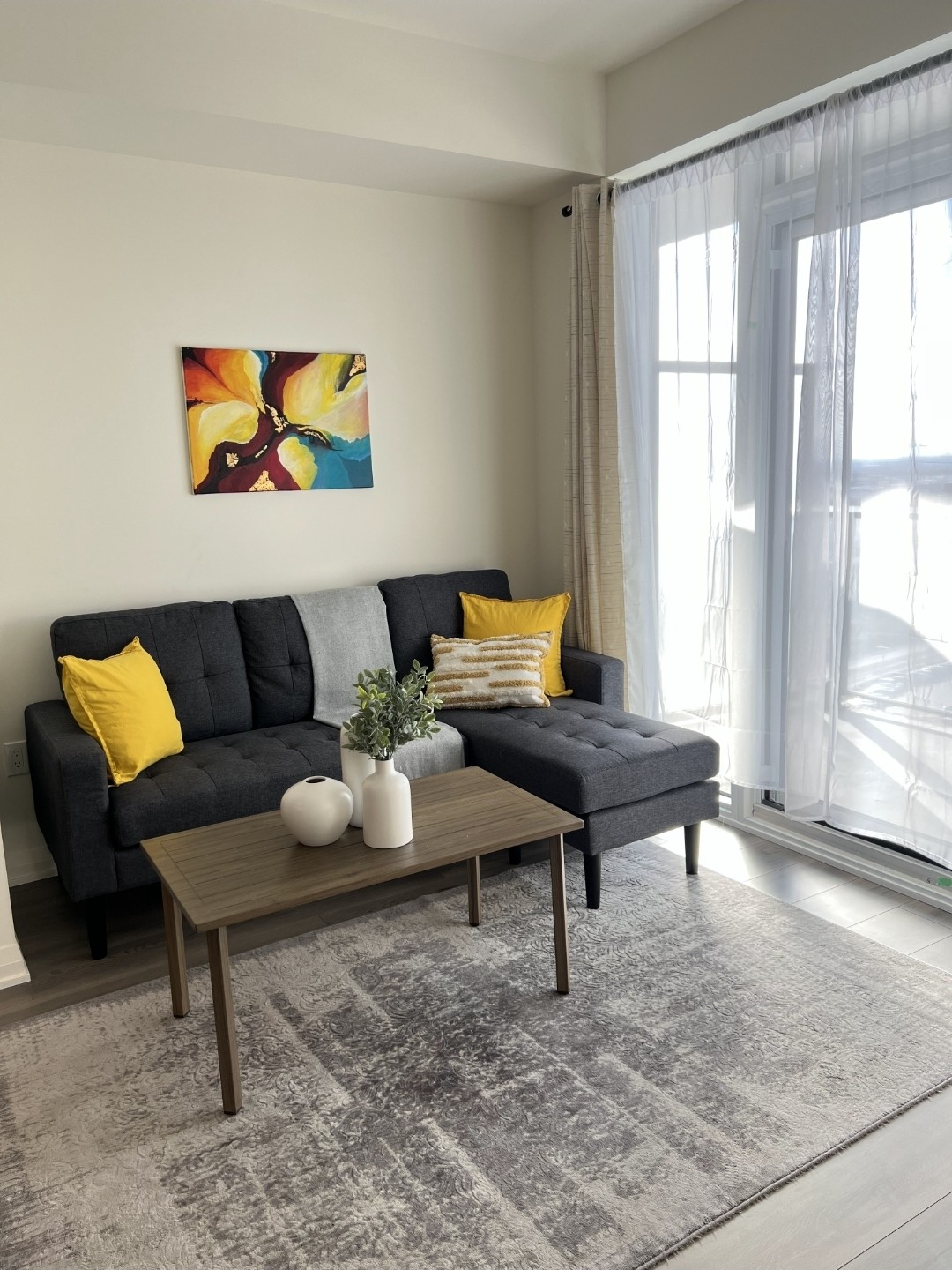 Welcome to your stylish corner retreat! This modern 2BR/2BA condo boasts expansive windows that flood the space with natural light. Enjoy spacious rooms, sleek finishes, and a layout perfect for relaxing or working remotely. Located in a vibrant neighborhood with easy access to shops, dining, and transit. Ideal for families, couples, or business travelers seeking comfort and convenience. Includes free onsite parking, paid EV charging and various amanitas, e.g. Gym, reading room.