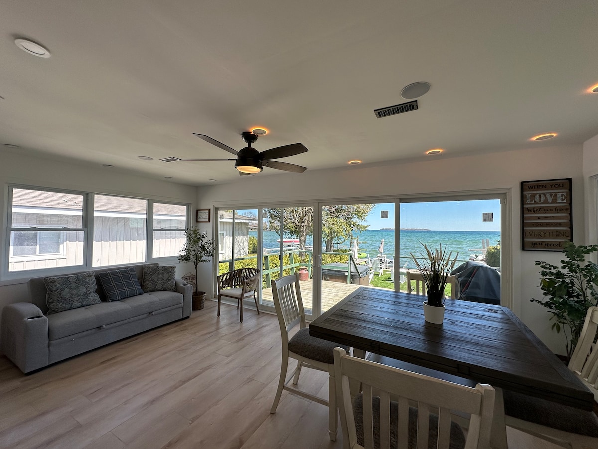 Bright and airy waterfront cottage in one of Lake Simcoe’s most desirable areas. The open-concept layout and unique lot design offer stunning lake views from almost every room. Enjoy custom furnishings, stylish decor, and a fully equipped kitchen—perfect for relaxing getaways or extended stays. Whether you're here for a peaceful retreat or lakeside fun, this cottage provides comfort, beauty, and convenience in a serene upscale setting. Ask us about fun activities that Lake Simcoe offers.