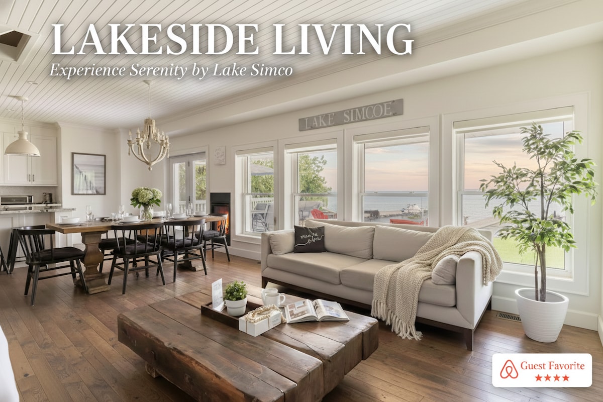 Experience luxury at our 5-star, Superhost-rated waterfront cottage on Lake Simcoe, just 80 KM from Toronto! A guest favorite, it offers breathtaking sunsets and sunrises from the living room and loft. Relax on the sandy beach with waist-deep waters, and enjoy the patio, BBQ, bar, lounge, kayaking, and fishing. With a fully equipped kitchen, 3 bedrooms, and 2 bathrooms, it comfortably accommodates up to 8 guests. Book your dream getaway today for the perfect blend of relaxation and adventure!