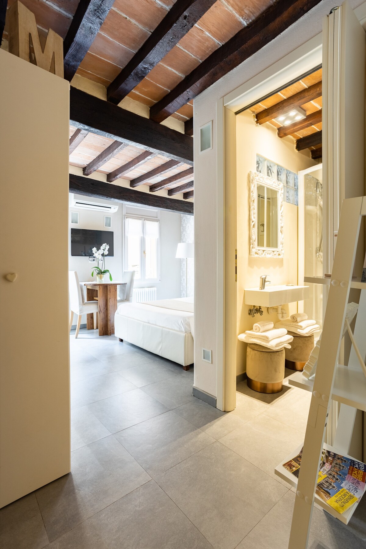 Charming loft is in the heart of Bologna's city with wonderful view on Piazza Santo Stefano (Basilica Seven Churches). An exclusive quiet place where modern and historical furnitures are combined into a lovely OPEN SPACE.The loft has got all the comfort and the luxury. It is 5 minutes walk from Piazza Maggiore, the main square, 2 minutes from Two Towers and from tha many bars and resturants. It is inside a restricted traffic aerea (ZTL). and in a pedestrian zone