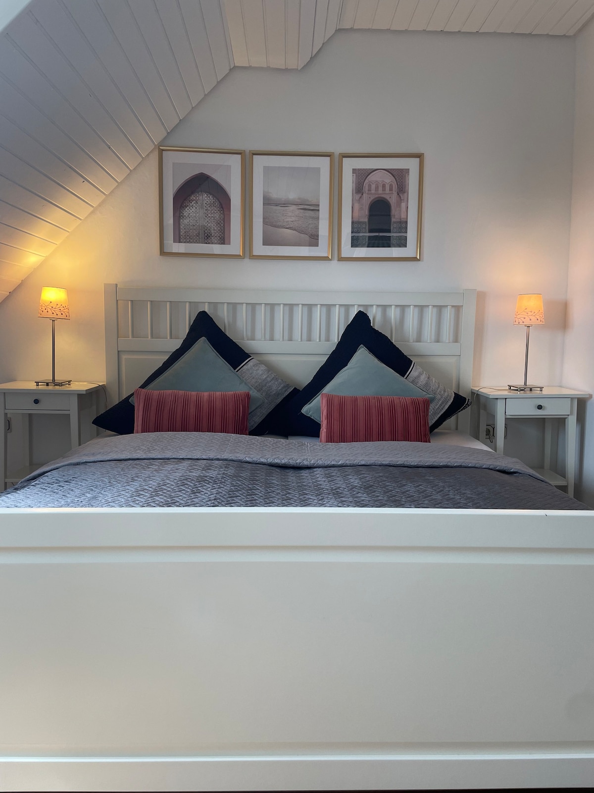 Genieße deinen Aufenthalt in Saarbrücken auf dem stilvollen Triller mit wunderschönem Blick ins Grüne und die Saarbrücker Innenstadt. Mach es dir bequem in den zwei sonnigen Zimmern im Dachgeschoss einer 2-geschossigen Wohnung. Das Schlafzimmer ist ausgestattet mit einem Doppelbett 140x200 cm und einem Kleiderschrank. Im Wohnbereich findet sich eine Kitchenette, Ess-/Arbeitstisch , Sofa und TV mit Disney+, Netflix und Prime Video. Ein Bad mit Dusche steht zur alleinigen Nutzung zur Verfügung
