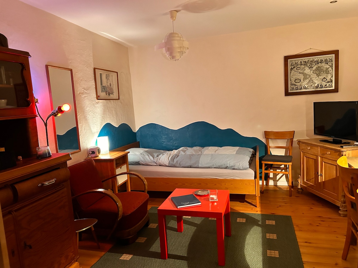 Ein kleines gemütliches Appartement.Zentral, aber ruhig in der Natur gelegen. Das Apartment bietet alles für einen kurzen oder längeren Aufenthalt. Es verfügt über einen schönen Schlafbereich, voll ausgestattete Küche, sowie einen gemütlichen Wohnbereich mit TV und Schreibtisch.Zu dem läd eine kleiner gemütlicher Platz auf der Terrasse zum Verweilen ein.Unser Schwimmteich bietet reichlich Abwechslung. Kostenloser Parkplatz direkt vor der Tür. Fahrräder können im Hof parken.