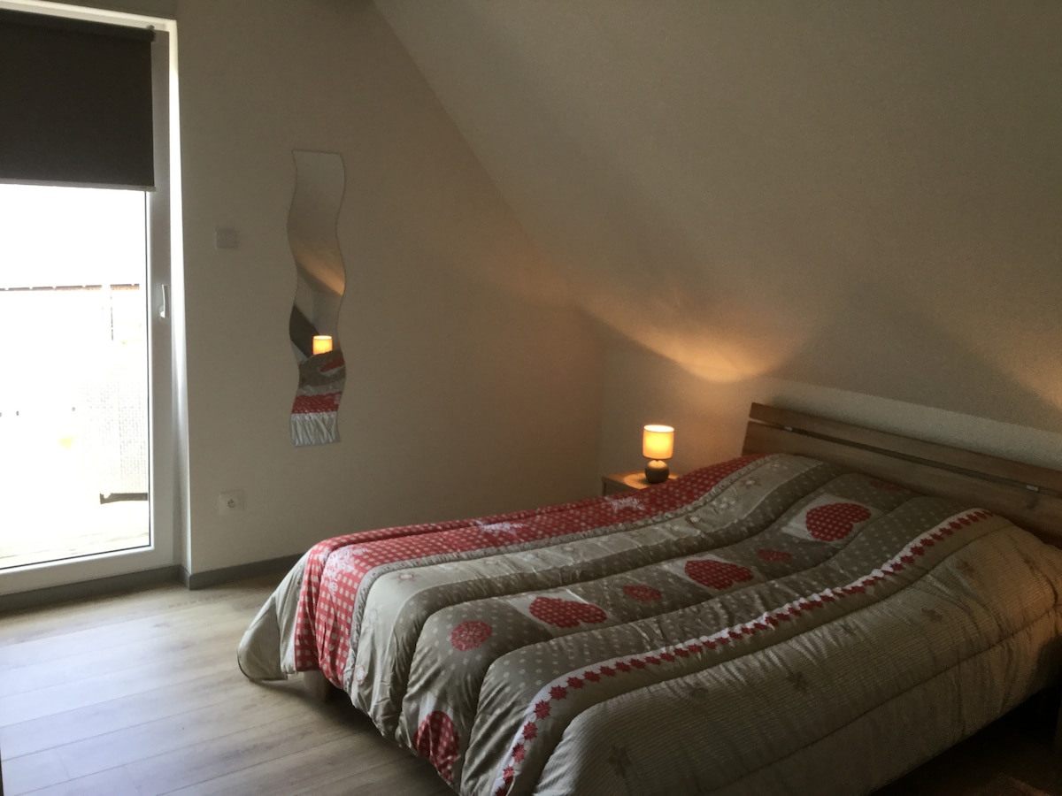 Lehne Dich zurück und entspanne Dich in dieser ruhigen, stilvollen Unterkunft. Auf 80 m² mit Balkon stehen Dir 2 getrennte Schlafzimmer mit einem Kingsize und einem Queensize Bett zur Verfügung: KEINE UNGEMÜTLICHE SCHLAFCOUCH ! Ein separates Esszimmer, eine separate Küche, ein separates Wohnzimmer und ein großes Bad mit begehbare Dusche sind auch vorhanden. Die Küche ist voll ausgestattet u.a. mit Senseo Kaffeemaschine und Kühlschrank/Gefrierfach. Eine Garage für Motorräder ist vorhanden.