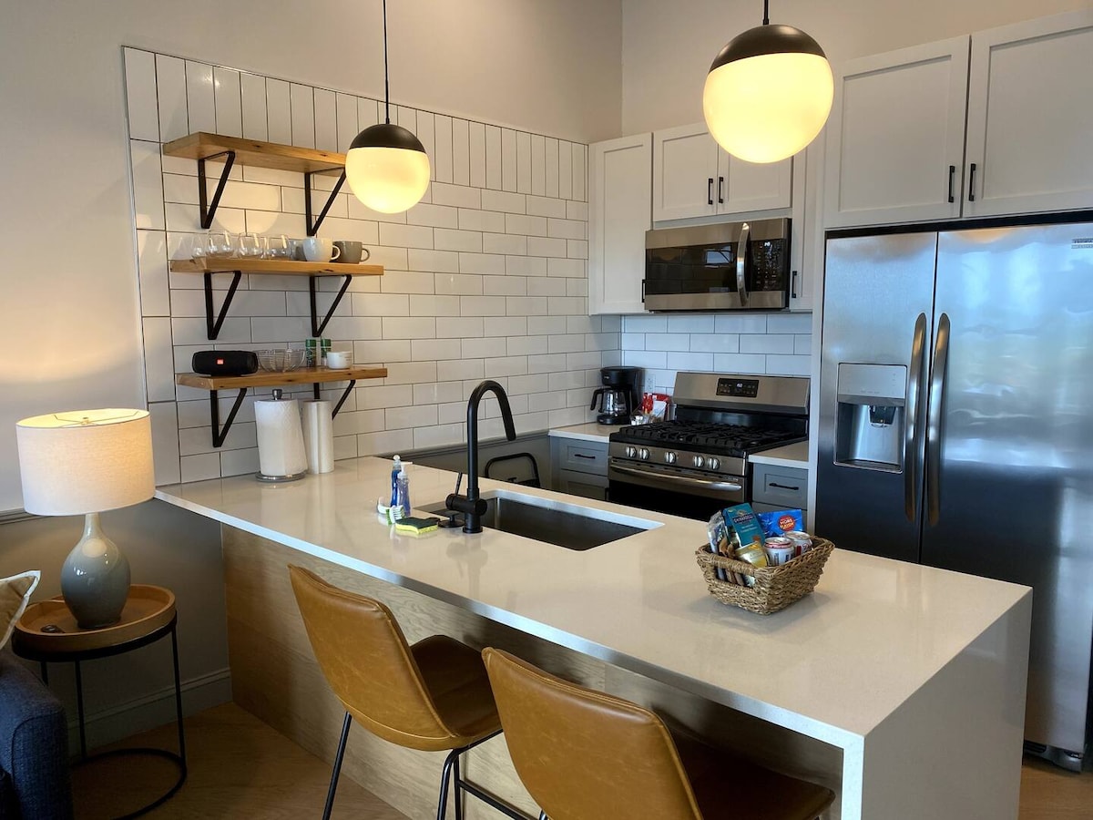 Come experience the best of Downtown Birmingham! This NEW condo is nestled in the middle of EVERYTHING. Just a short walk to LOTS of Birmingham's best restaurants, bars, and entertainment. On the property you will find a coffee shop, Pizza shop, art gallery, men's boutique, and much more. Whether you are in town for business or vacation this condo has everything you need, including a stocked kitchen, washer and dryer, and first aid kit. We have thought of it all. Ideal for professionals!