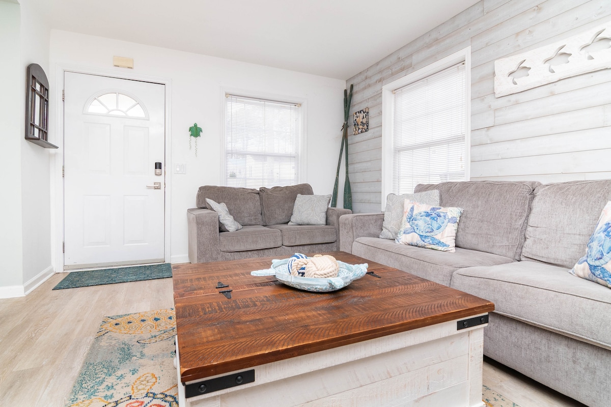 Experience the magic of coastal living at 'The Blue Crush'. It's COMPLETELY REMODELED including 3 bedrooms and a deck to watch the sunrise over the ocean and sunset over the bay. If your family is looking for more space. Our sister beach house, Orange Crush is located next door, has 5 bedrooms and can accommodate up to 12 guests. Combining your stay at the Orange and Blue Crush, you accommodate up to 20 guests, in 8 bedrooms. Please reach out to us for special group pricing.