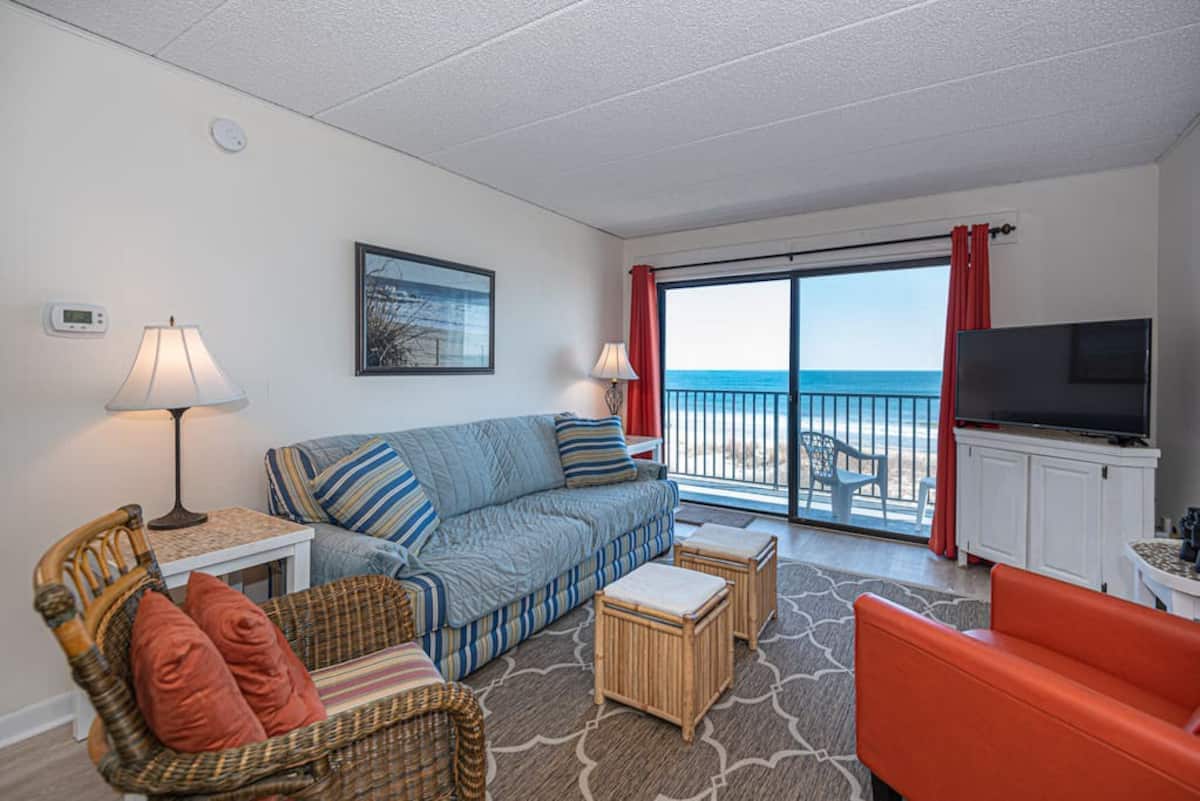 Your family will be close to everything when you stay at this beautiful condo located right on the beach with expansive balcony views of both ocean and bay. With the best amenities around, this year-round rental is equipped with an enormous indoor pool, basketball and tennis courts, shuffleboard, saunas, gym, library, sun deck, & game room with arcades, claw machines, billiards, and air hockey tables. This 2-bedroom unit comfortably sleeps 6 which makes it ideal for families or couples alike.
