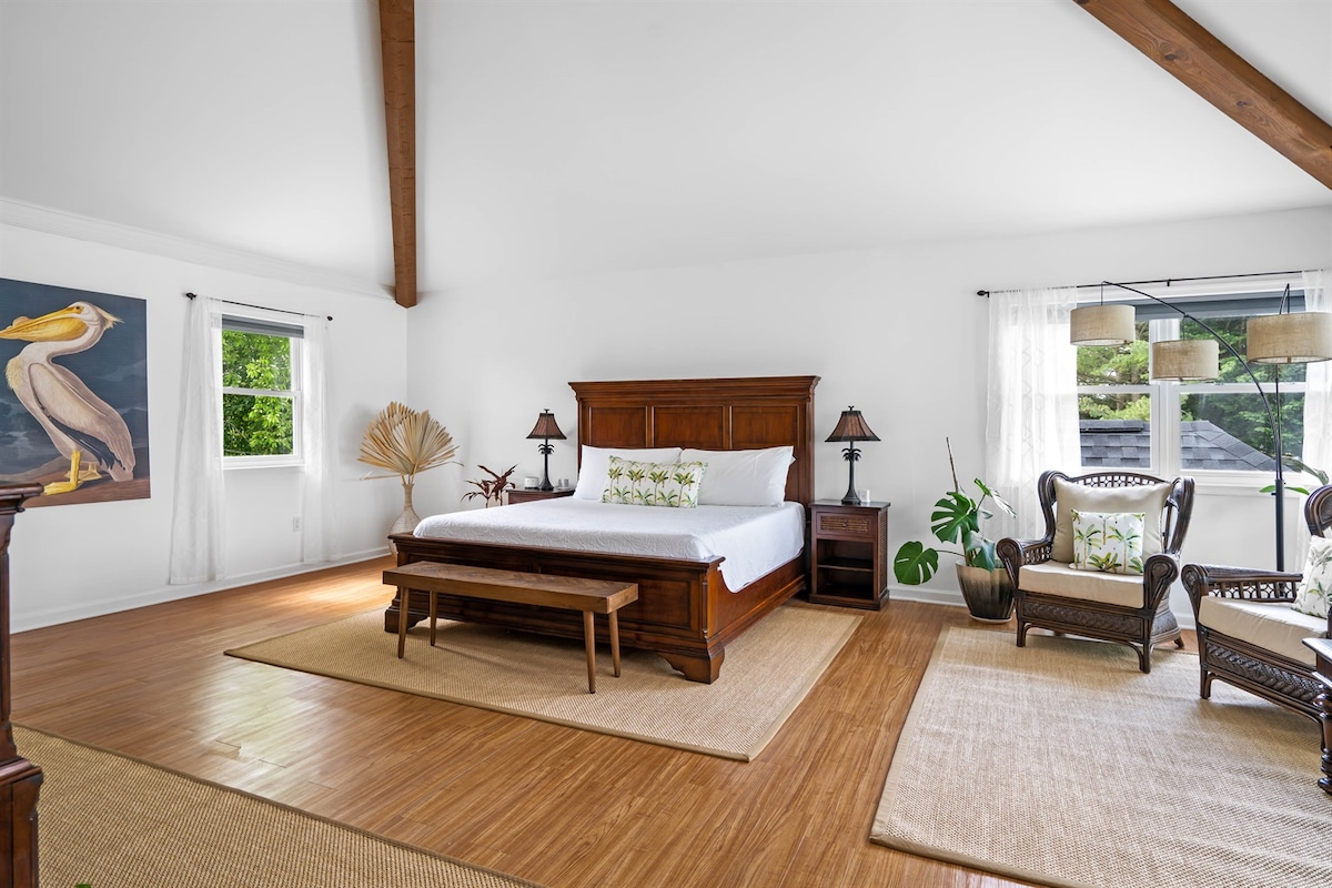 No kids, no pets. The Seagull Room is a spacious luxury bedroom with a vaulted ceiling, king-size bed, private ensuite bathroom and your own private garden patio. Enjoy the large in-ground pool, the huge jetted spa/hot tub and Himalayan salt sauna, hammocks, fire pits and more. 10 minutes to the Rehoboth Beach boardwalk, just minutes from a wide array of great dining and 130 outlet stores, a short hop to Cape Henlopen State Park, Lewes, Dewey beach and much more. It's time to hit the beach!