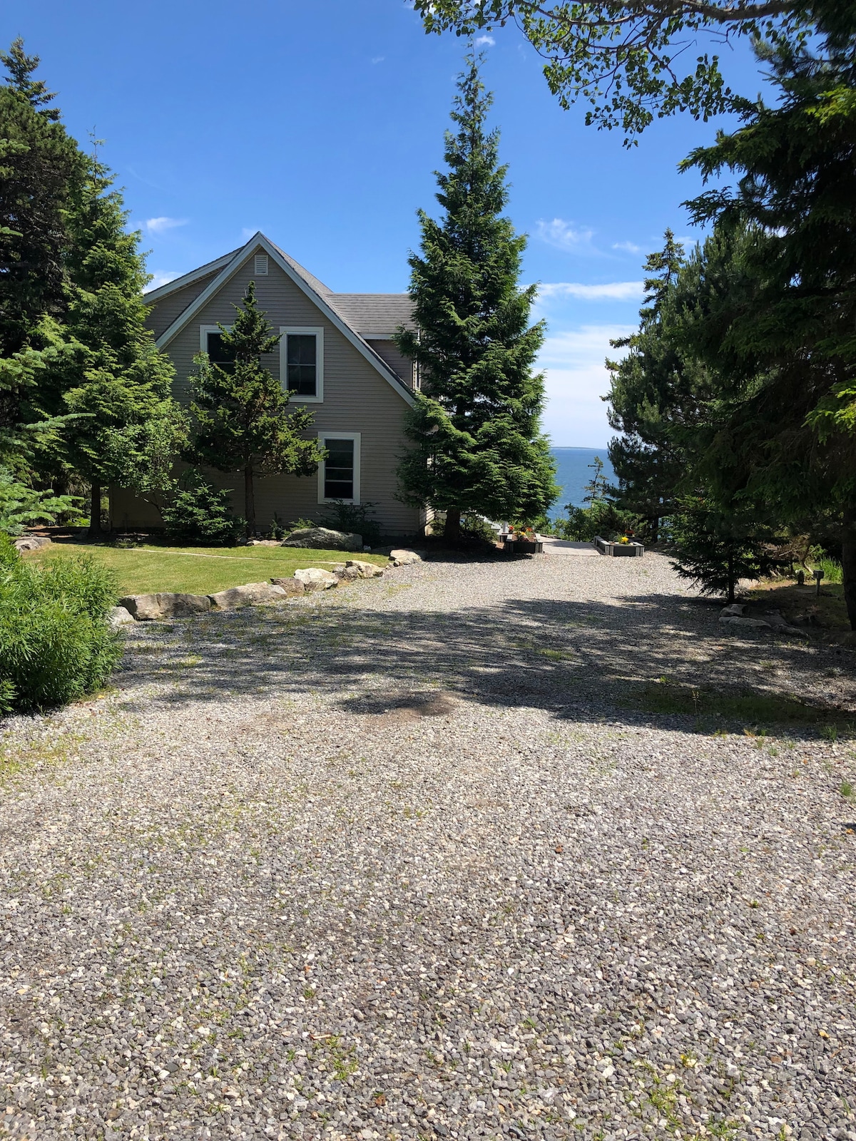 Enjoy sweeping vistas of the Atlantic Ocean from this 2002 home perched among spruce trees above the rocky coast. Watch for bald eagles and seals. Fall asleep to the sound of crashing waves. Walk down to the edge of the ocean to lounge or picnic. Walk 6 minutes or drive the 0.1 miles to the park entrance. Hike the Little River Trail. The house has vaulted ceilings, panoramic views, fully equipped kitchen, and whirlpool bath.