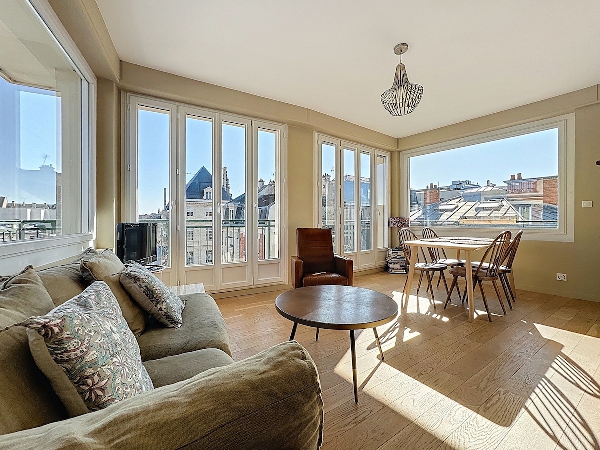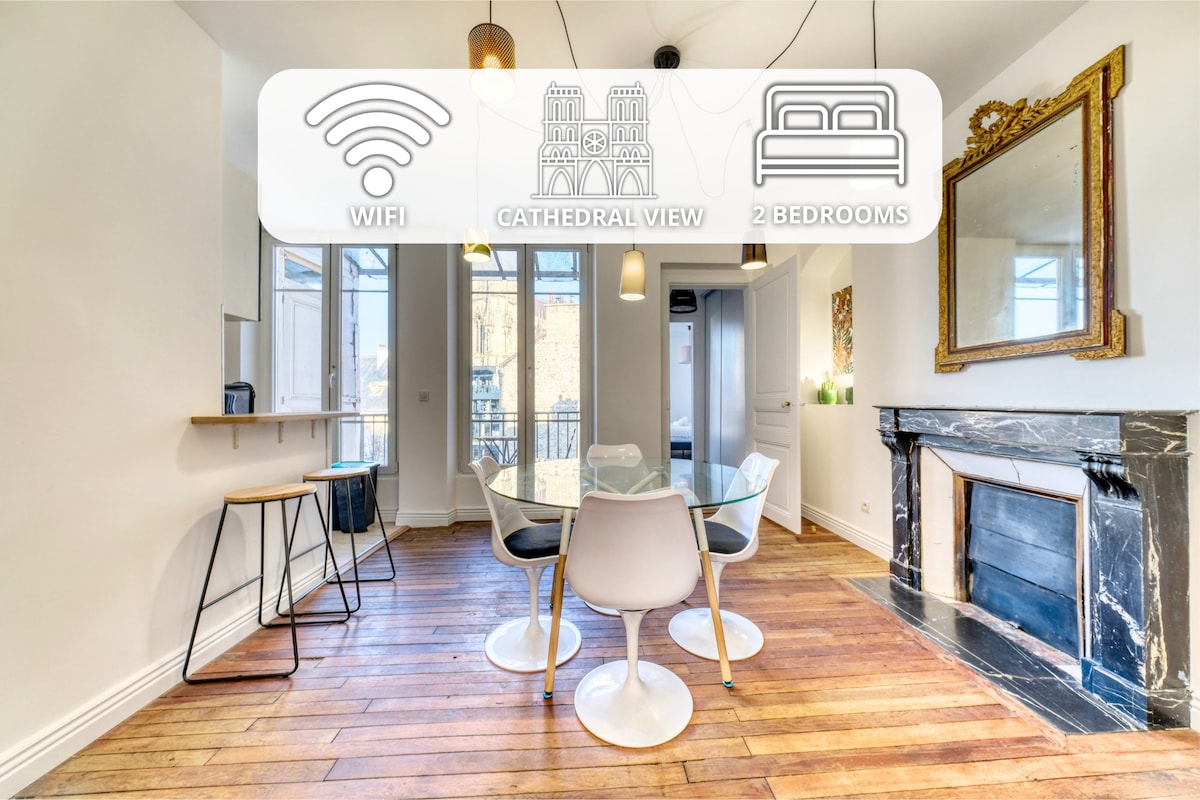situé en plein coeur du centre ville, dans un immeuble luxueux en pierre de taille richement sculpté DP Home guest house vous reçoit avec une élégance décontractée. Entiérement rénové par l'agence d'architecture d'intérieur DP Home chaque objet et pièce de mobilier a été choisi avec soin pour faire de votre séjour un moment d'exception. L'appartement bénéficie de deux balcons dont un avec vue sur la cathédrale.