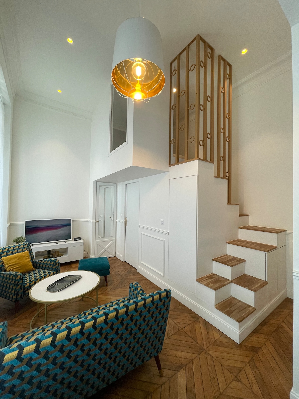 🚩 Bienvenue au Loft ! 🎁 Une bouteille de champagne offerte en cadeau de bienvenue 🥂🍾 🏠↔️Très spacieux, Loft de 150 m2 💤 Calme et confortable 🤴 Lit King Size 👸 Lit Queen Size 🛋️ Canapé convertible 🧖♀️🫧 Baignoire balnéo dans la salle de bain pour vous détendre 📽️🛋️ Vidéoprojecteur 4K dans le salon, comme au cinéma 🅿️🚘 Parking gratuit, privé et sécurisé sur place. Largeur : 2m25. Longeur 4m90. Hauteur : 2m00 🎅 Le marché de Noël en décembre est à 15 minutes à pied