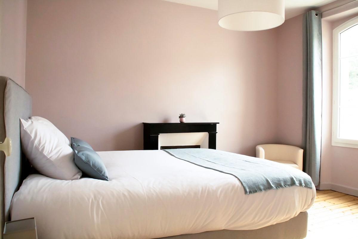 You will stay in an elegant room with private bathroom in a charming residence in the heart of the Champagne vineyards. Breakfast included. Bedroom : large bedroom of 20 m2 with independent access a double bed 160x200, desk, TV a sofa bed for 2 children or a teenager. large private bathroom with shower and double sink Separate WC Privileged location in a wine-growing village near Epernay, capital of Champagne