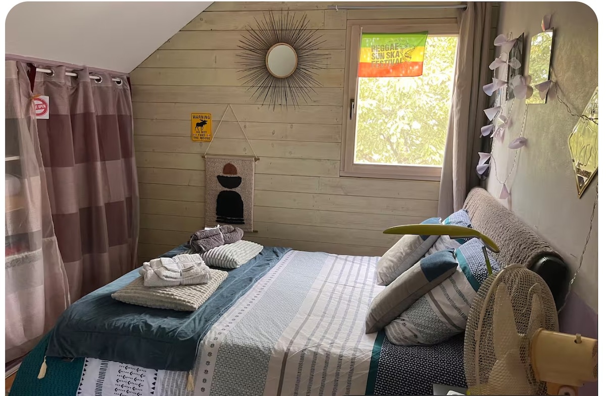 Laissez-vous séduire par cette jolie chambre aux tons pastels avec salle de bain privative. Elle se trouve au 2e étage et peut accueillir jusqu’à 3 adultes. Nous vous accueillons dans notre maison d’hôtes où vous disposerez d’un parking fermé et d’une entrée indépendante. Vous pourrez profiter du jardin et d’un jacuzzi (sur demande). Les petits déjeuners sont servis dans la salle à manger et vous pourrez prochainement profiter d’un grand salon avec canapé et baby-foot (dès le printemps 2024).