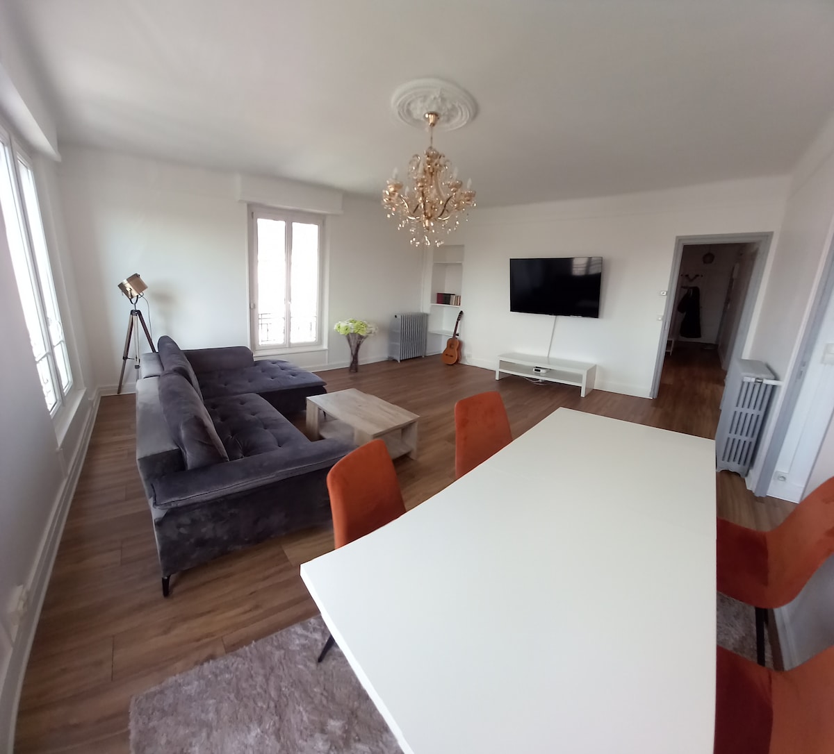 This charming F3 consists of 2 bedrooms. Sheets are provided and the bed will be made before your arrival. A very beautiful living space with equipped kitchen, Nespresso coffee machine, ceramic hotplates, oven, microwave. The bathroom consists of a shower, a vanity unit, a towel dryer, a washing machine. bath towels are provided. Also equipped with a live box 6 fiber optic connection. Perfect for business stays and exploring the city. - cathédrale 3min - Disneyland 1h10. - Paris, 45min by train