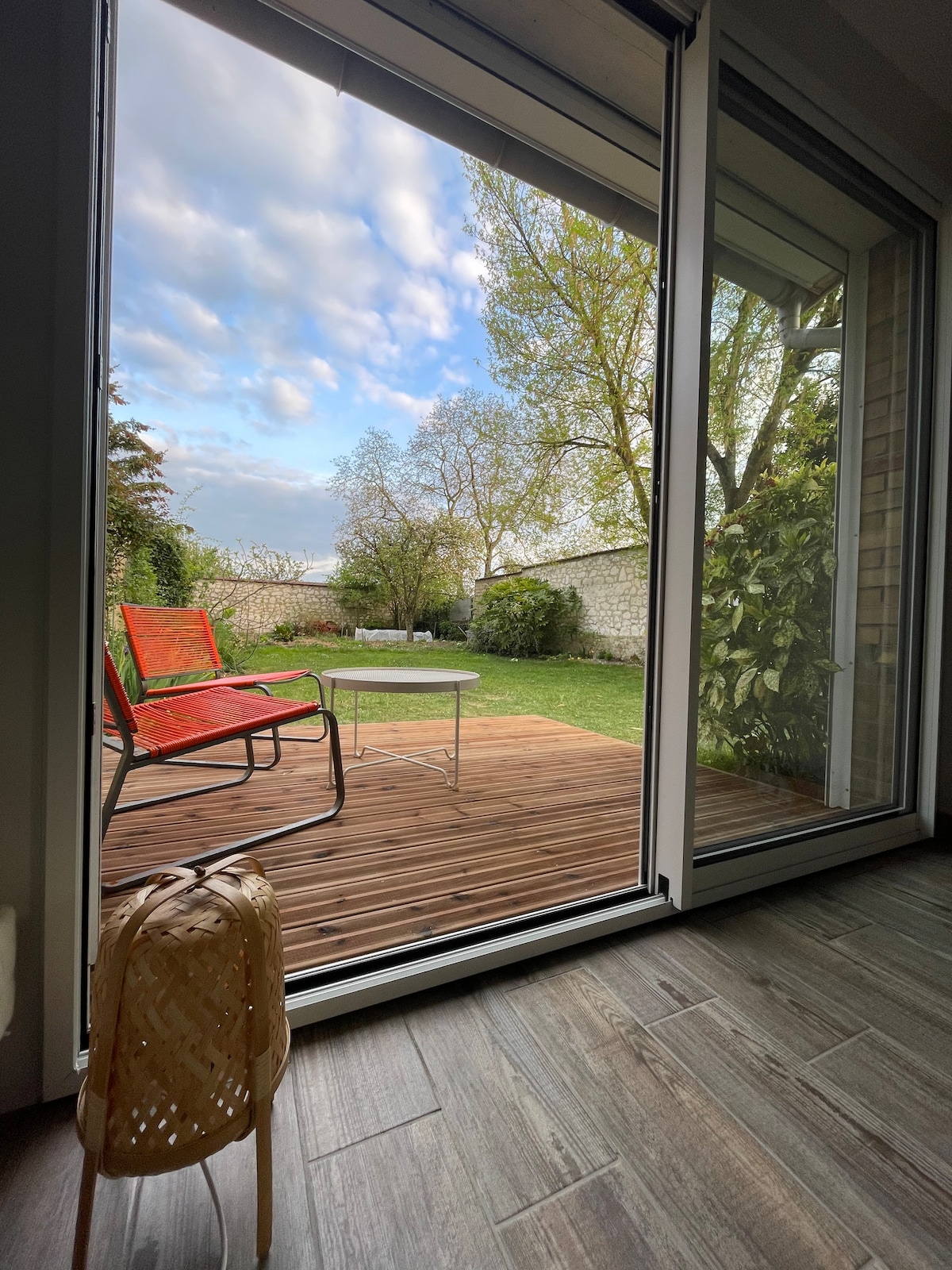 Ds bourg à 10' du centre-ville de Reims, vous traverserez un chartil pour entrer ds ce 2 pièces de 40m2 indépendant mais attenant à notre maison. . 1 Pièce principale avec cuisine (frigo, plaques, mini-four, cafetière) et 1 canapé-lit. . 1 chambre avec 1 lit double, 1 lit simple, 1 bureau . 1 Salle de bain avec douche et WC. Au calme, petite terrasse bois, vue sur jardin. Lits faits. Serviettes fournies N'hésitez pas à nous contacter si vous avez des demandes spécifiques : heure d'arrivée, ..