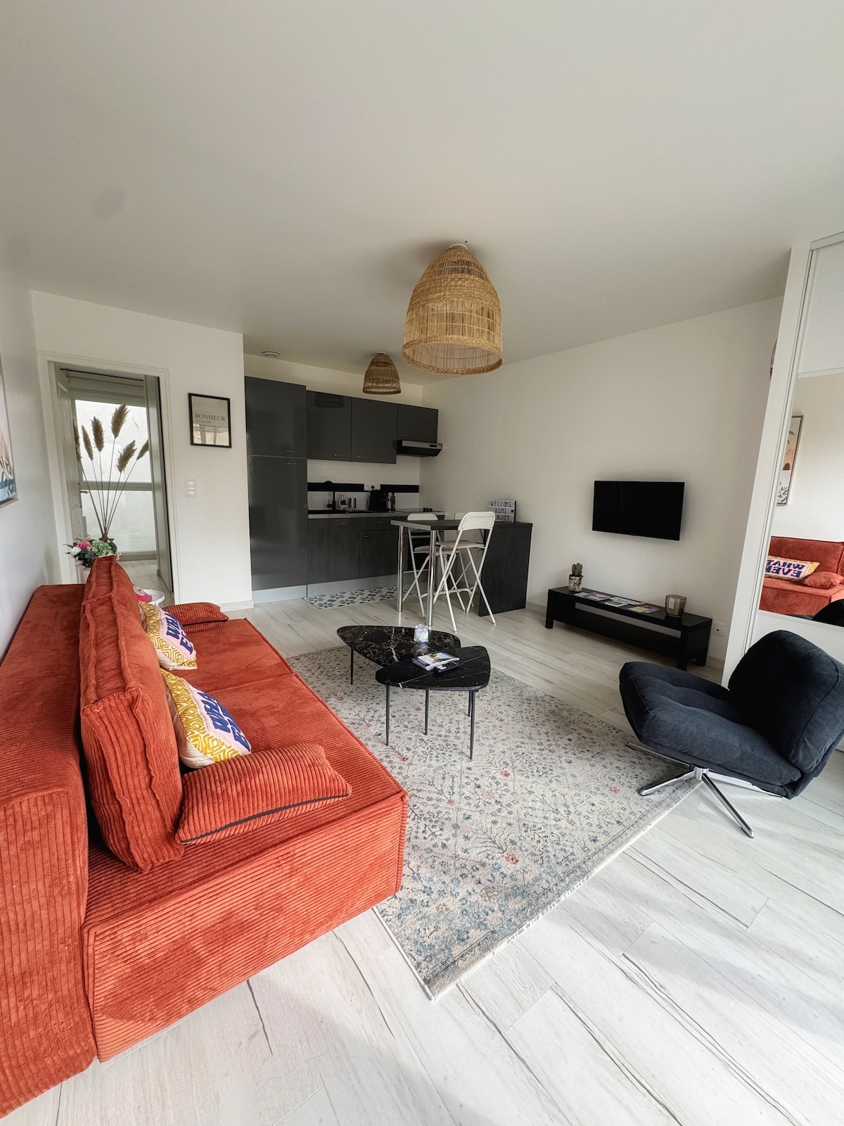 A fully renovated flat in a quiet street in the town centre, ideally located between the station and the cathedral. A stone's throw from all the amenities and life in Reims. You will find everything you need, such as a washing machine, kettle, coffee machine, wifi, TV, fibre, induction hob and oven/microwave, etc. Towels, toiletries and sheets are provided. The perfect way to spend a pleasant stay in the heart of the Champagne region. The little extra: a small private courtyard!