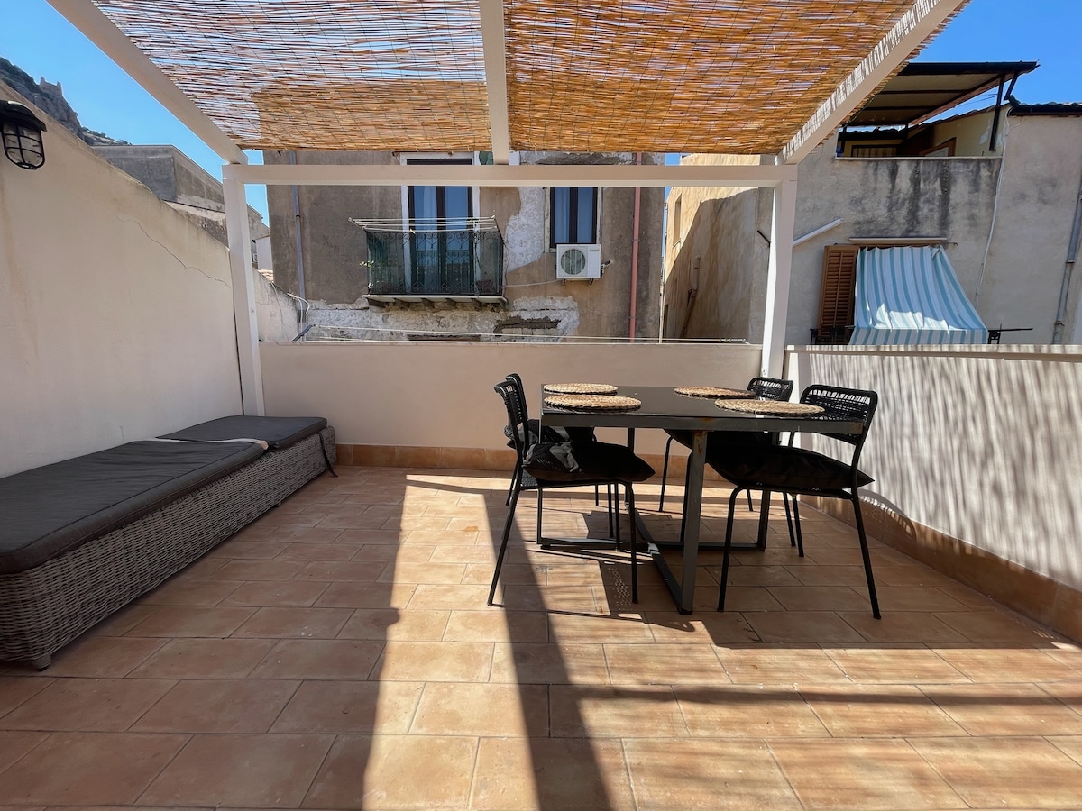 Appartamento indipendente nel Centro Storico di Termini Imerese recentemente ristrutturato con soffitto in legno a vista e ceramiche artigianali, 3 vani e accessori su due livelli collegati da una scala interna. Vi si accede dalla Serpentina, strada alberata che collega Termini alta con Termini bassa. Il centro è raggiungibile a piedi in pochi minuti, percorrendo le caratteristiche stradine acciottolate. Sono parimenti raggiungibili a piedi il lido attrezzato, il porto e la stazione ferroviaria.