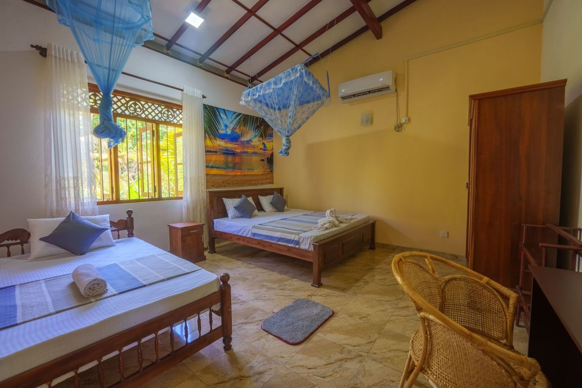 Have fun with the whole family at this stylish place.500 meters from Goyambokka Beach, 700 metres from Red Beach and 1000 meters from Silent Beach 1.1 km from Marakkalagoda Beach.The property is around 10 km from Hummanaya Blow Hole,15 km from Weherahena Buddhist Temple.Mulkirigala Rock Monastery is 15 km away and Matara Fort is 33 km from the villa.2-hour drive from Yala National Park to see Elephants and Leopards.We prepared your breakfast at your request.There is SLT Fiber line internet.