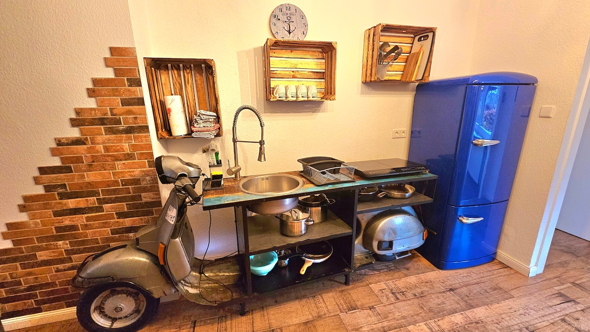 Willkommen bei uns Zuhause! Hinter unserem Haus erwartet euch ein neues, modernes Apartment, perfekt zum Abschalten und Durchatmen. Mit einer Sommerküche für eure Kochabenteuer, einem schicken Duschbad und einem offenen Schlafzimmer mit einem kuscheligen Doppelbett (1,60 x 2,00 m) seid ihr bestens ausgestattet. Die eigene Holzterrasse im Grünen lädt zu entspannten Morgenkaffees und lauschigen Abenden bei Wein ein. Das Beste? Ihr habt das ganze Apartment für euch – kein Stress, nur Ruhe!