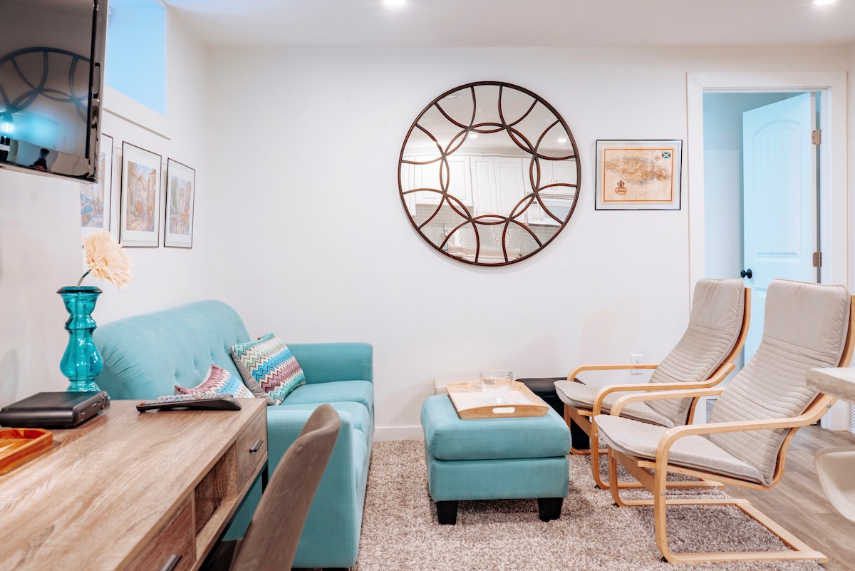 Kick back and relax in this peaceful and centrally located suite. If you’re looking for a quiet space all to yourself, then welcome home! While we’re just upstairs, you’ll hardly notice us. You’ll enjoy a private entrance, new furniture from EQ3, a full kitchen, a private 4-piece bath, and your own washer and dryer (if you need it). Tucked just off Broadway Ave, we’re situated close enough to all the action but far enough away to enjoy peace and quiet.
