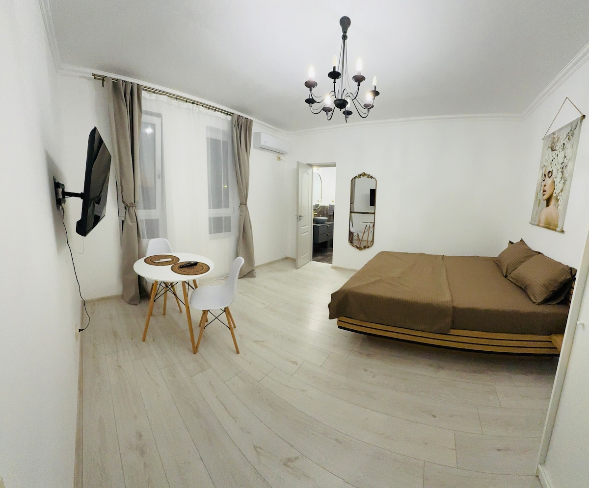 The apartment is completely renovated in a modern style, perfect to make your stay in Timisoara more pleasant. It is located in a good area of the city, on a quiet street, with the possibility to park your car for free in the inner courtyard or on the main street. It consists of bathroom and kitchen (fully equipped) open space with bedroom. WiFi and Smart TV is available and free! Our guests will have access to all amenities of the apartment and we hope they will feel like home.