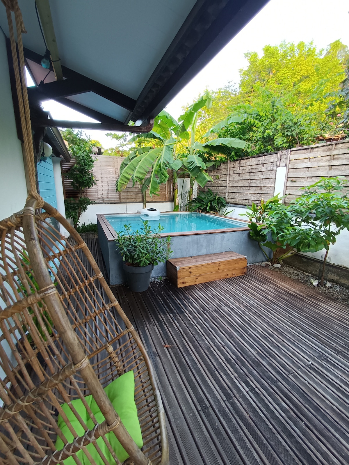 La Douce Escale à Matoury vous accueille dans un studio cosy avec tout le confort : chambre douillette, cuisine équipée, salle de bain moderne et terrasse. Profitez de votre jacuzzi privatif, d’un jardin tropical reposant et d’un accès à la piscine. Un véritable havre de paix pour un séjour en couple ou en solo, proche de toutes commodités.