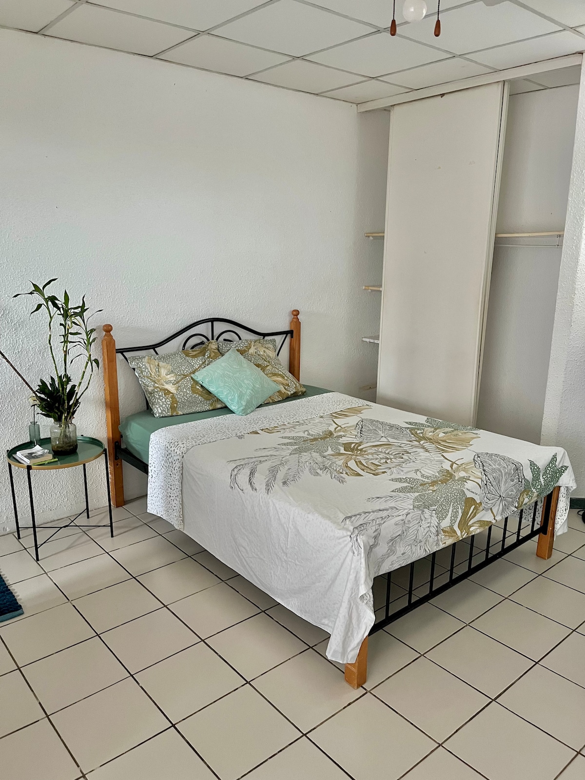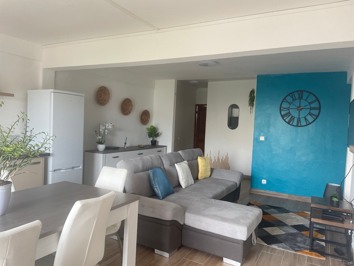 Appartement rénové et moderne, idéal pour 2 personnes, situé à La Madeleine, quartier central de Cayenne, proche du grand centre commercial le Family Plaza (7min en voiture), de l’hyper U (3min en voiture) et de l’hôpital de Cayenne (3min en voiture). Vous bénéficierez d’une chambre climatisée avec un lit Queen size (160), une cuisine toute équipée, la wifi via la fibre optique, une salle de douche avec un lave-linge, une terrasse sans vis-à-vis, un parking sécurisé et gratuit dans la résidence.