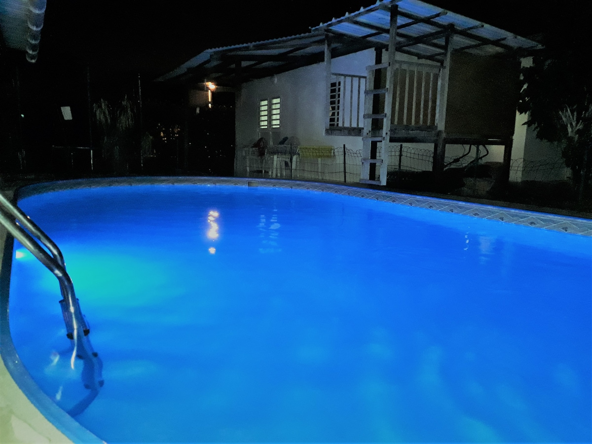 Belle maison en bois de 3 pièces, dans un quartier résidentiel calme. La maison est au milieu d'un jardin de 4000m2 arboré, avec piscine privée, à la limite de la forêt domaniale du Mont Matoury. La maison est néanmoins bien située puisqu'elle est à: - 5 min des centres commerciaux, cinémas. - 15 min du centre de Cayenne. - 15 min de l'aéroport. - 5 min de la première plage Vous serai là au calme, et loin des embouteillages, et en pleine nature. Soyez donc les bienvenus. Sylvain