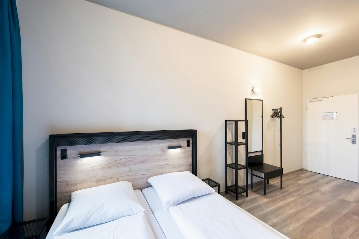 Twin Rooms are 18–20 m² and include two single beds (90×200 cm), a private bathroom with shower/WC, fresh towels and linens, free Wi-Fi, heating, and storage space. Modern and practical, a&o Stuttgart City makes a comfortable base for two guests exploring Stuttgart.