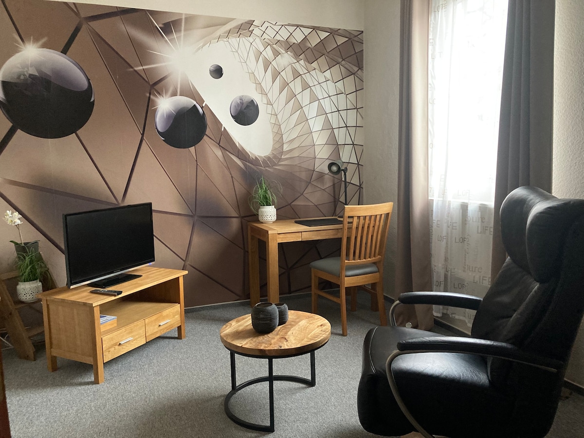Ferien, Messe, Geschäftsreisen, kleine Fotoshooting, Wochenendurlaub... Gefällt Ihnen das Andere, Besondere? Dann liegen wir auf einer Wellenlänge. Die komplett sanierte Degenfabrik bietet Ihnen ein Ambiente, das die Zeit ein wenig langsamer laufen lässt. Parkplatz vorhanden, 10 bis 15 min zur City, diverse Restaurants und Geschäfte, Regionalbahnanbindung. Die Sportanlage liegt hinter dem Haus. Im selben Gebäude betreiben wir eine Kunstgalerie, die gerne in Augenschein genommen werden kann.