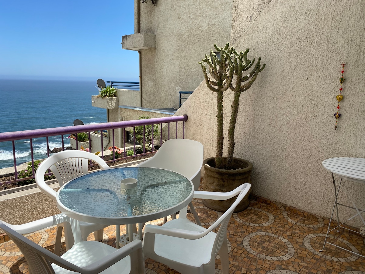 Gran vista al mar, en sector 5 Reñaca, primera linea, 2 personas , 1sofá en living y cama 2 pz en dormitorio. Full equipado. Estacionamiento de uso compartido con el resto de los departamentos según orden de llegada. Amplia terraza equipada.