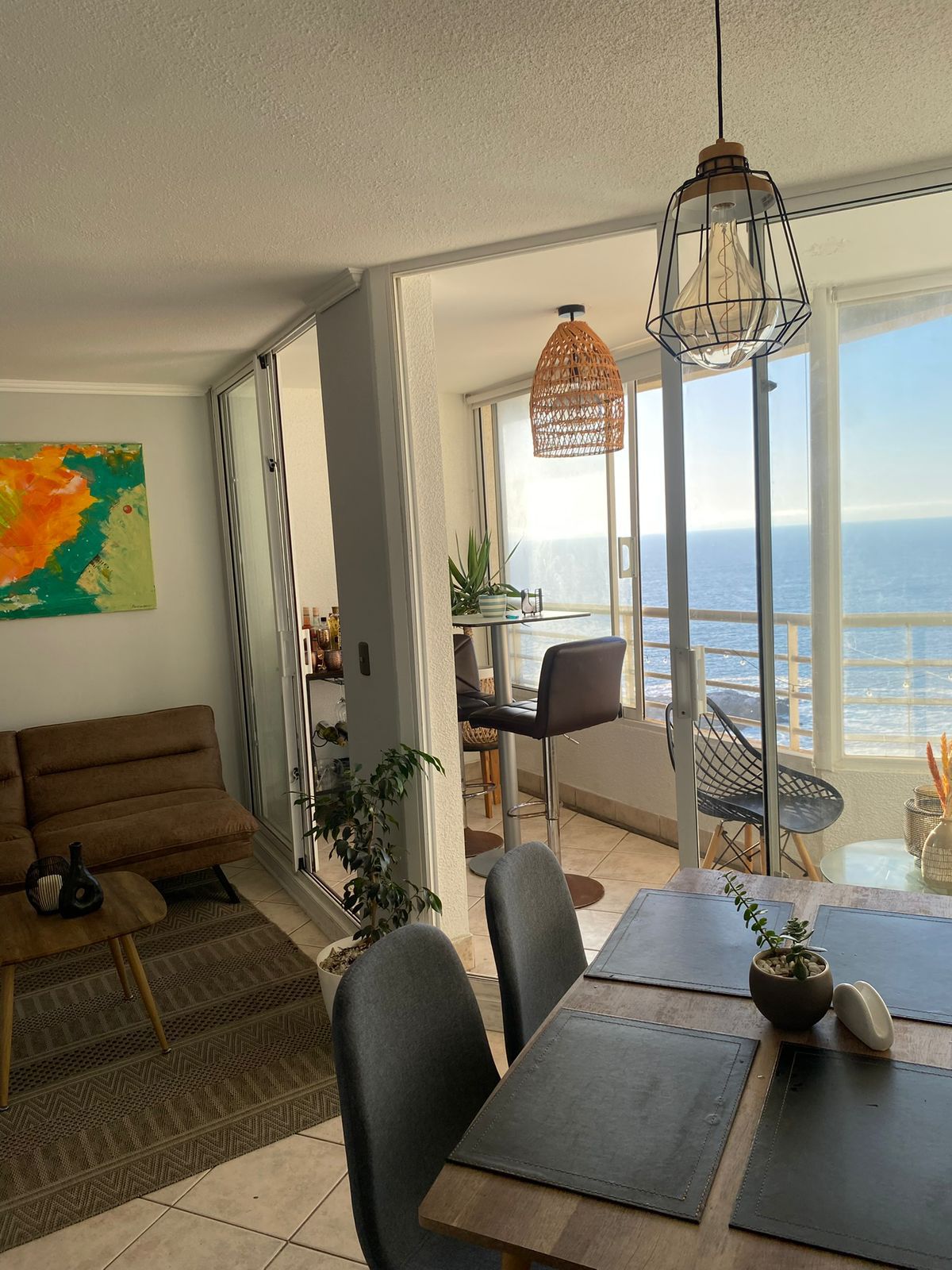 Lindo departamento con preciosa decoración. Totalmente equipado para 4 personas . Primerísima línea, vista libre, espectacular e inmejorable a Valparaíso, se encuentra a 15 min caminando de la playa Cochoa (hay que bajar una escalera). Está a pasos de Supermercado Lider y Jumbo.Incluye 1 Estacionamiento privado subterráneo. Excelente conectividad y transporte público a una cuadra. **NO ESTÁ EN EL SOCAVÓN ** DEPTO SOLO PUBLICADO EN AIRBNB No redes sociales ni otras plataformas.