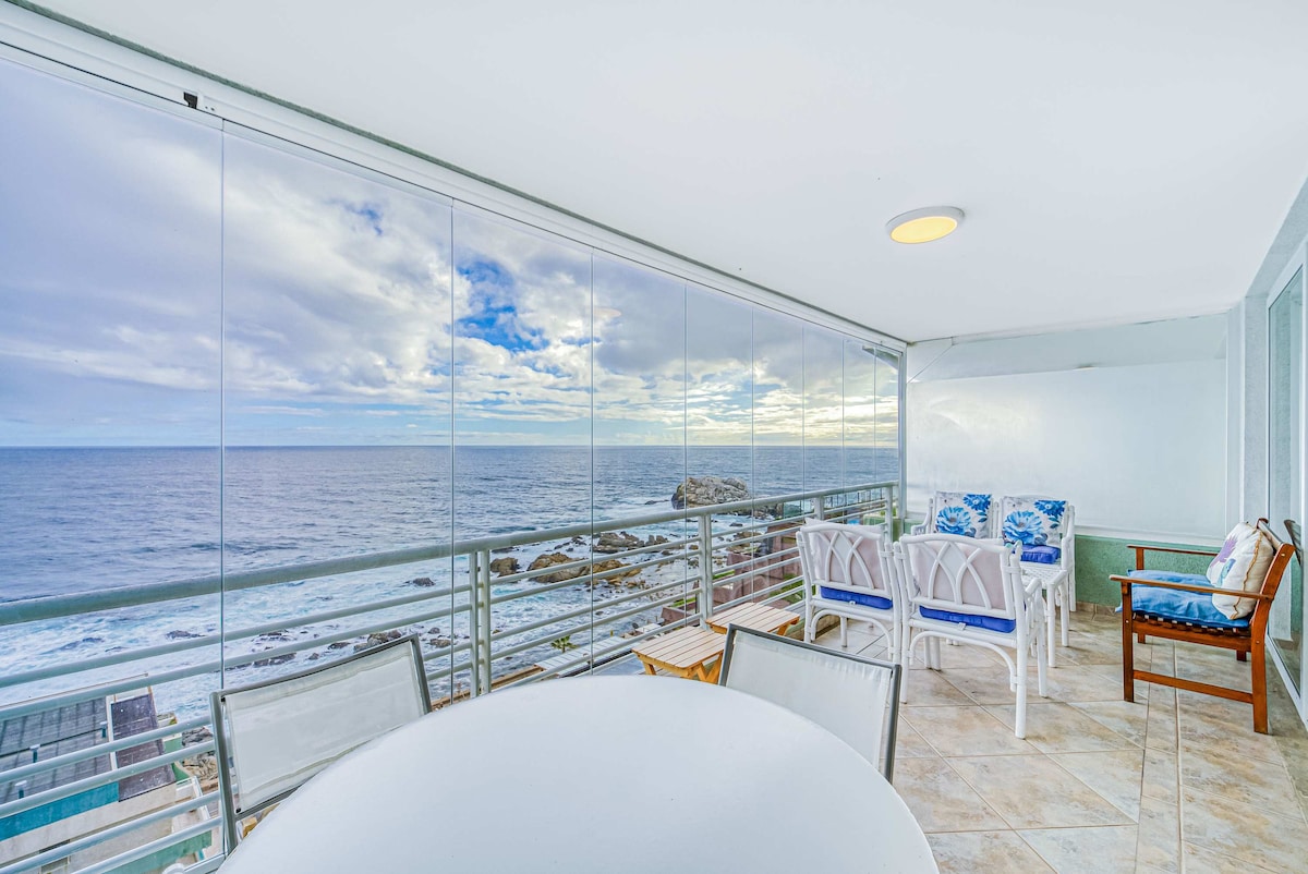 Right ON the beach in Reñaca, our place has stunning views over the beach, ocean and Valparaiso bay! It is uniquely located right next to restaurants, bars, coffee shops, a gym, shops as well as lots of family friendly activities both on and off the beach. We are situated on the 4th floor and our large private ocean-facing terrace is incredible! Come and enjoy! Rental includes sheets and towels, access to pool, garage parking and washer in the unit and NEW HIGH SPEED INTERNET (fiber optic)