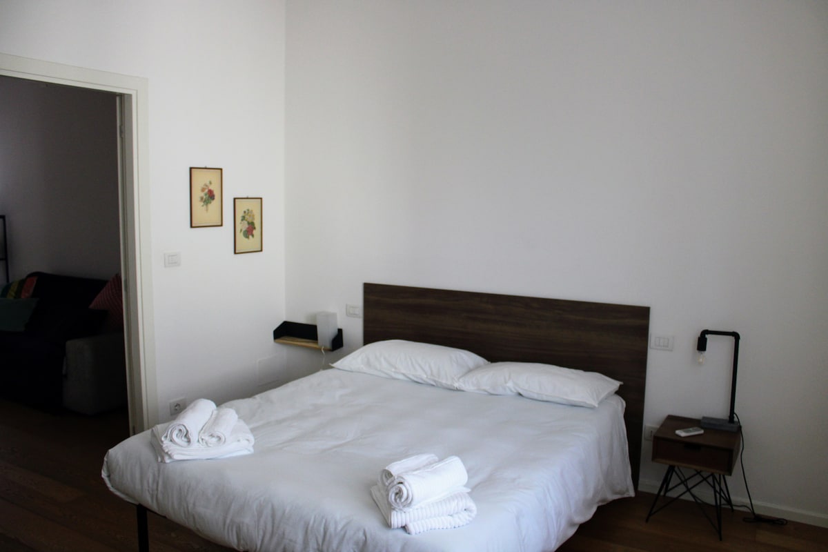 Look out over Bologna’s famous red rooftops before unwinding on the couch with free Netflix, Disney+, and Prime, or take a stroll in the peaceful inner courtyard. The apartment features a spacious bathtub, air conditioning, and high-speed internet for a touch of luxury. Located in the heart of the historic city center, it sits on the top floor of one of Bologna’s most beautiful buildings, complete with an elevator, a doorman, and just steps away from everything.