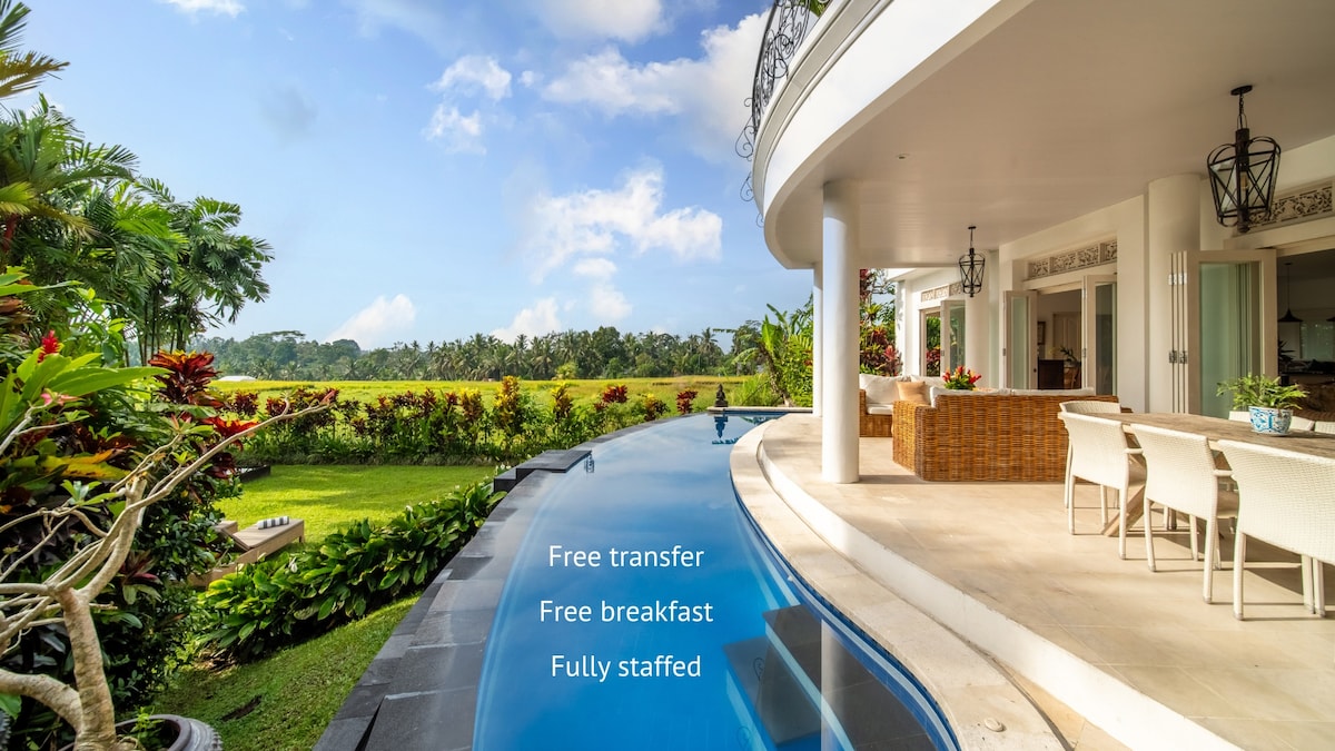 Villa Shamballa is a spiritual and tranquil haven that offers an intimate and indulgent private villa experience. This romantic hideaway magically perched atop a ravine along the mystic Wos River is the ideal location for a couple especially for their honeymoon and anniversary and birthday. "Special Offer for honeymoon and Birthday (same month of your stay) - min 3 nights or over 5 nights- Booking by 25 Mar '26 Complimentary 3 course pool side romantic candlelit dinner & flower bath.
