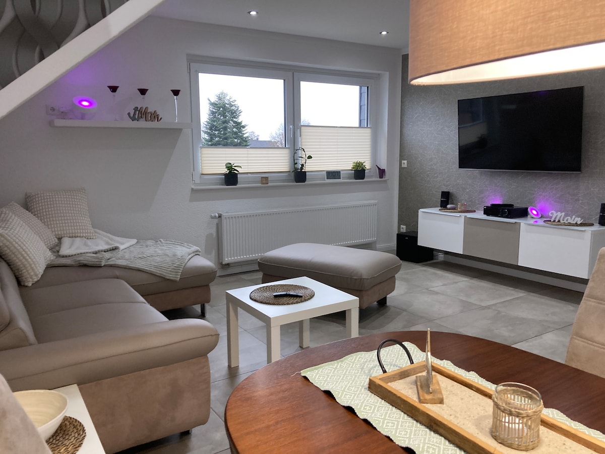 Hab Spaß mit der ganzen Familie in dieser stilvollen Unterkunft. Die Unterkunft hat eine sehr gute Ausstattung und viele Extras. Zum Träumen kommst Du in ein Boxspringbett mit 180x200 cm, und kannst Dich in dem Bad entscheiden ob Du gemütlich in der 190x90 cm großen Badewanne Baden, mit Regendusche oder kleinen Massageduschkopf Duschen möchtest. Für ein Kind oder eine 3 Person ist auch noch ein Gästezimmer da, was aber auch als Arbeitszimmer genutzt werden kann. Kochen kannst Du in der Küche.
