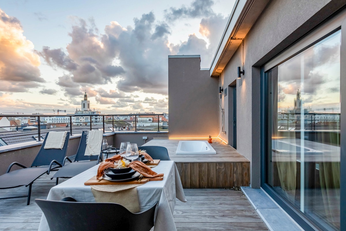 Op een boogscheut van het strand van Oostende, handig gelegen in het centrum, op wandelafstand van het station, ligt dit gezellig, hip appartementje ideaal voor 2 personen. Verwen jezelf en kom genieten van mekaar aan zee. Dit nieuwe penthouse heeft alle comfort en moderne voorzieningen. Naast een slaapkamer met grote smart TV, een keukentje en een badkamer, zijn er 2 grote houten terrassen, 1 met zijdelings zeezicht, een buitenbad en een buitendouche, alsook ligzetels en een elektrische bbq.