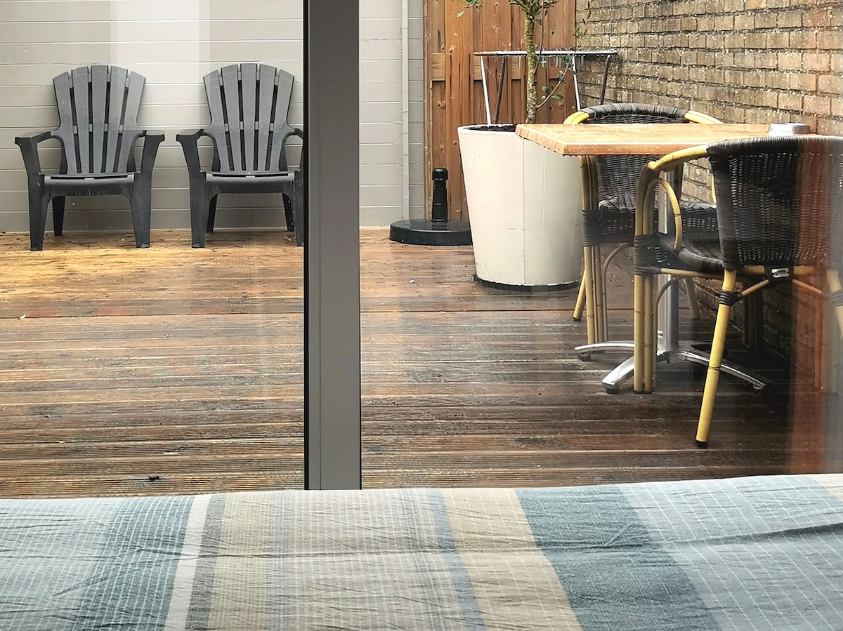 Dit appartement biedt veel privacy met een eigen beschutte tuin en ingang. Beneden is een gezellige woonkamer met open keuken en de openslaande deuren zorgen voor veel licht en ruimte. Naast de vloerverwarming is er een knus houtkacheltje. Via een open trap betreed je het slaap gedeelte, waarin 1 ruim 2 persoonsbed en 2 losse single bedden staan, gedeeltelijk afgeschermd door wanden. Voor het meebrengen van uw hond rekenen we 15 euro contant bij aankomst. Alle ruimtes zijn afgewerkt met stijlvolle natuurlijke materialen. De gehele begane betonvloer is voorzien van vloerverwarming. De sfeervolle woonkamer heeft een bankstel, houtkacheltje en TV met Netflix ( geen TV aansluiting). De keuken wordt deels afgescheiden door de boomstam keukentafel en granieten aanrechtblad. De keuken biedt de mogelijkheid om te koken met retro Smeg apparatuur en is voorzien van gasstel, koelkast, vaatwasser, combi-magnetron en waterkoker. De badkamer ademt een Zuidelijke sfeer met een vloer van pebble stones en rivierstenen waskom. In de afgesloten wasruimte staat een wasmachine en stofzuiger. Er is een aparte toilet ruimte. De slaapzolder is verdeeld in twee gedeeltes, met aan de ene kant van de wand het luxe twee persoonsbed en aan de andere kant de twee losse eenpersoonsbedden. De ruimte met de houten vloer en bedden voelt direct ontspannen aan. Het appartement ligt op loopafstand van het oude centrum, waar een gezellige dorpskern met winkeltjes is. Met de fiets ben je binnen 10 minuten op het strand. Het appartement is volledig nieuw gebouwd en is gezellig en heel licht qua sfeer, je voelt je snel thuis. Je kunt zelf volledig koken, als je dat wilt. Zodra je binnen stapt krijg je een vakantie gevoel, aangezien de inrichting een relaxte beach stijl is. De afwerking is heel luxe. Gasten van het appartement mogen tegen half tarief meedoen met de yoga lessen van Yogastudio Ouddorp. De studio ligt naast het appartement. De gasten hebben een eigen prive tuin, die volledig word afgeschermd door een schutting. In de tuin staat een gezellig zitje, relax stoelen en grote picknick tafel. Mijn vriend en ik zijn beschikbaar per mail, whats app en telefonisch. Het pittoreske Ouddorp is een klein badplaatsje aan zee met een gezellige dorpskern en een zandstrand van maar liefst 17 kilometer lang. De natuur is prachtig en de omgeving leent zich bij uitstek om er te surfen, fietsen en wandelen. Het centrum is letterlijk op loopafstand. Een heerlijke echte bakker zit om de hoek. De supermarkten zijn ook heel dichtbij. Rondom de kerk zijn gezellige winkeltjes en terrasjes. Het strand is wijds en heerlijk met een aantal gave beachclubs. De bushalte is aangrenzend aan de tuin. Parkeren is gratis op de Stationsweg, direct naast het appartement.