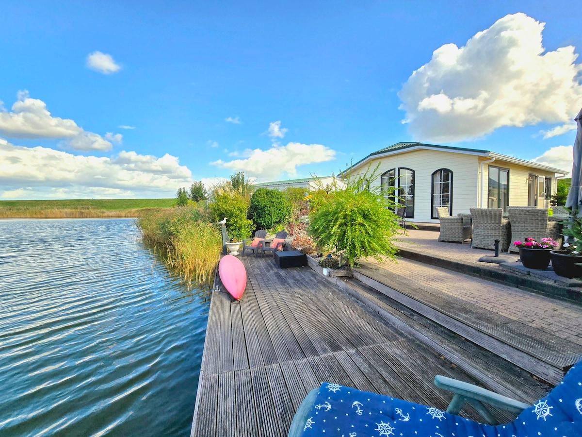 Luxe en duurzaam chalet direct aan het water