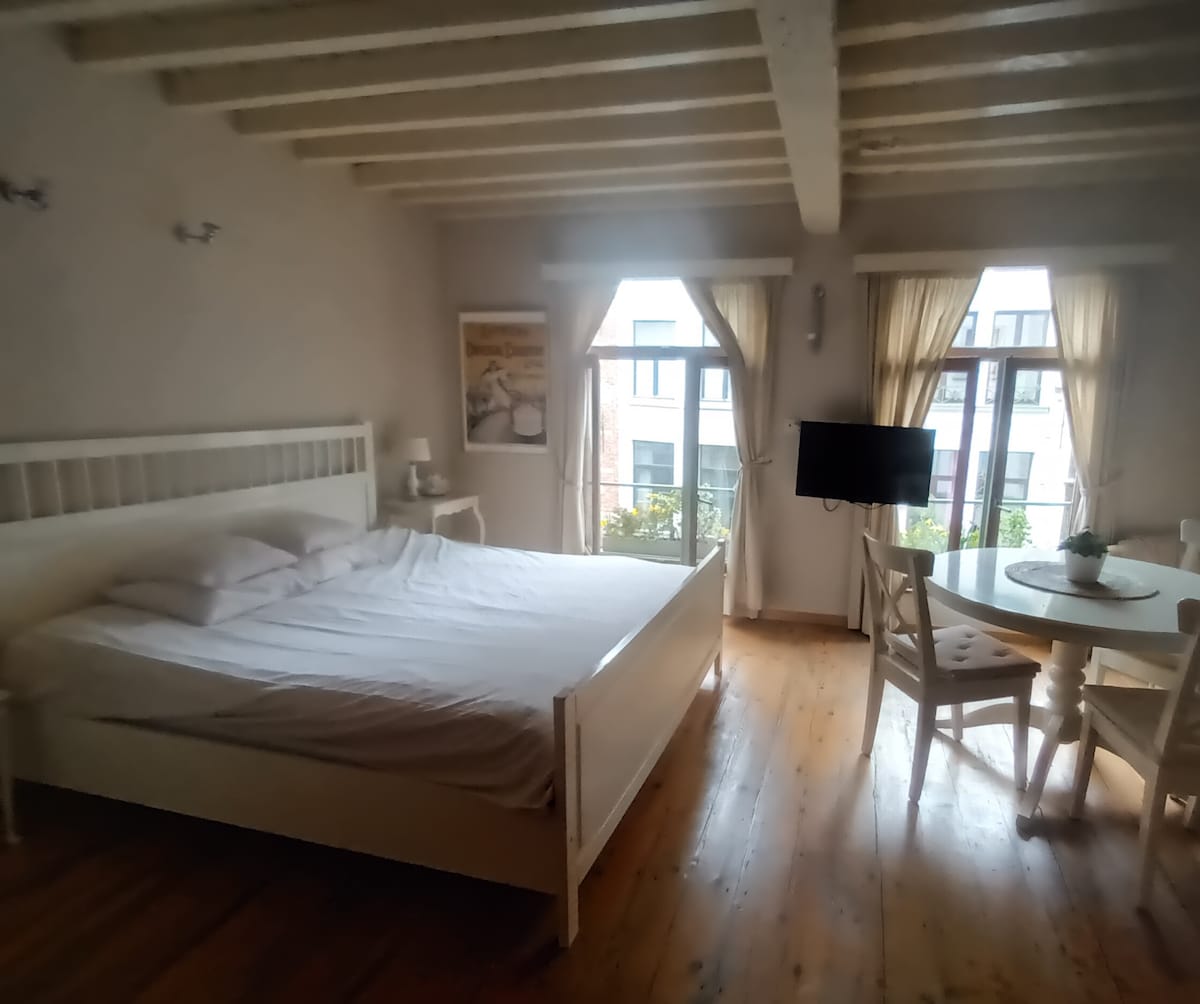 Visit Antwerp while staying in this trendy decorated studio at 100 meters from central station and all major metro and public transport. Wake up in this luxury bed (180x220) and get ready to stroll through town. You are close to all major shopping streets and the old city centre and 50 meters from the Antwerp meeting and convention centre and zoo