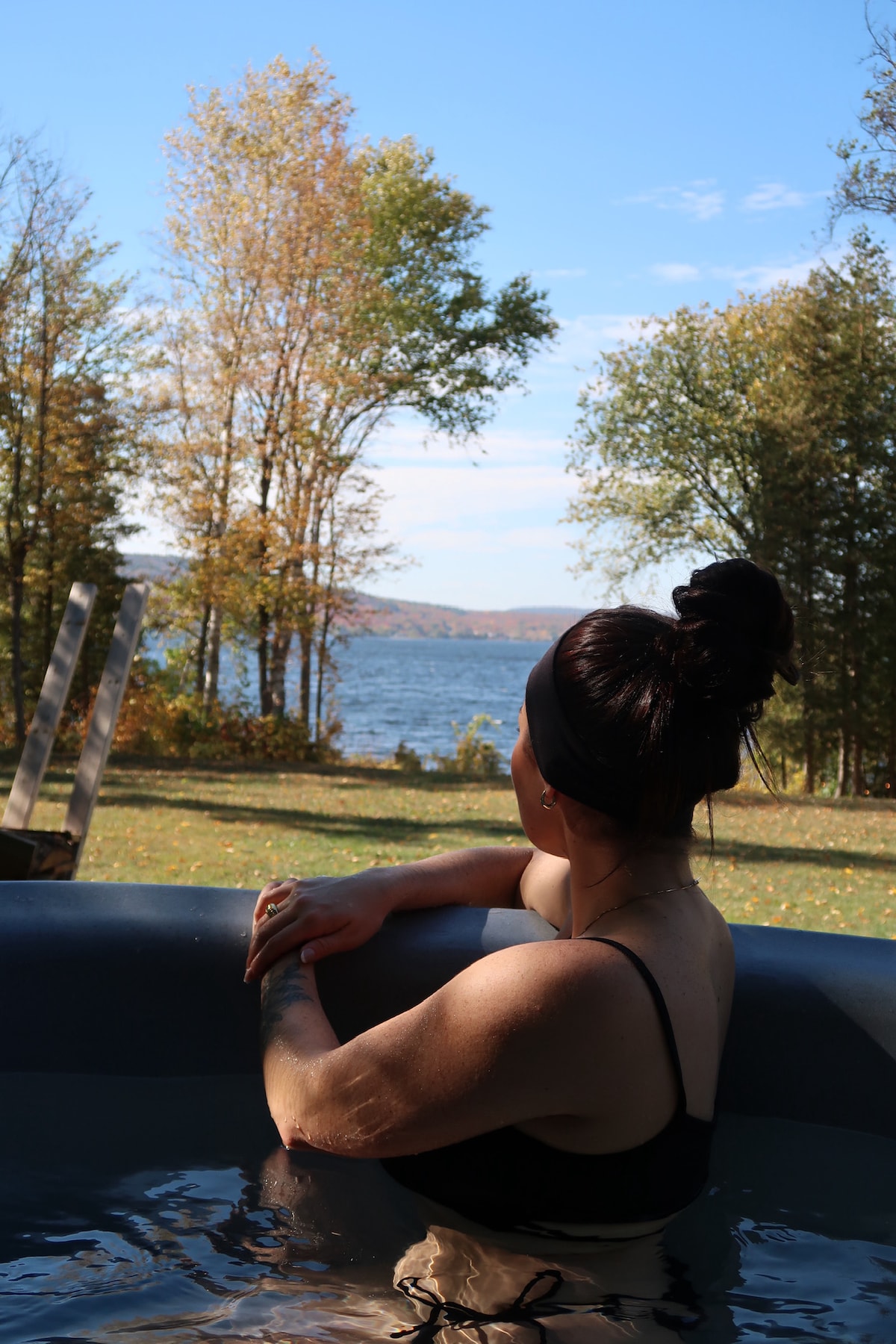 在私人热水浴缸中享受秋季色彩!