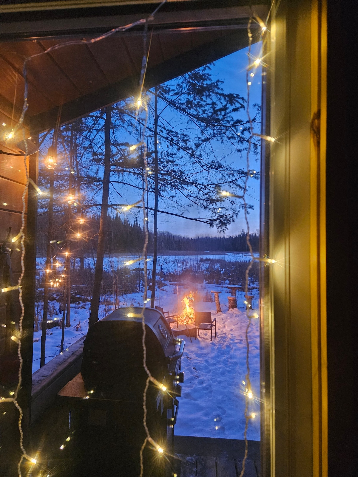 “We left feeling completely reset. Floor-to-ceiling windows, a cozy woodstove, and the cedar hot tub, plus you’re just steps from the lake.” ☞ Closest cabin to the lake + dock access ☞ Private cedar hot tub ☞ Woodstove + radiant floors ☞ Outdoor firepit + unlimited firewood ☞ Indoor hammock + large windows ☞ Nespresso (pods) + tea ☞ Dishwasher + stocked essentials ☞ Hotel linens + luxe bath essentials Nearby 15–30 min → cafés, trails, small towns ~1 hr → Ottawa / Gatineau