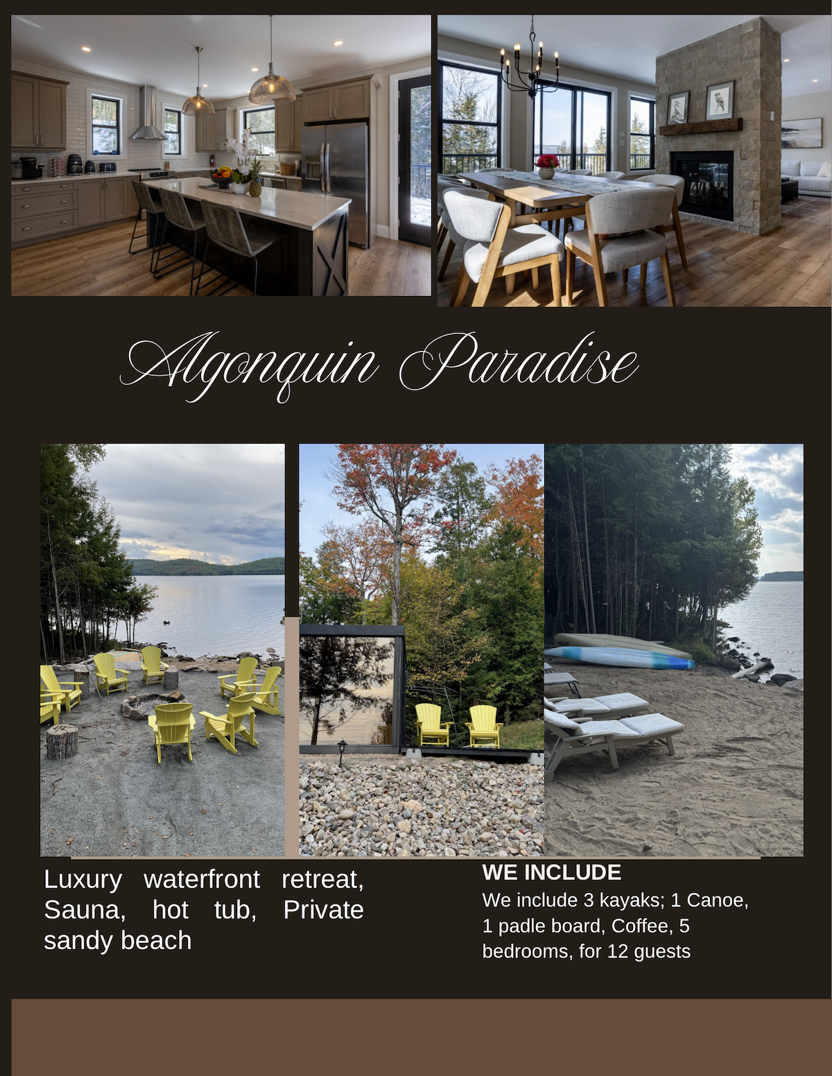 Escape to this luxurious boutique cottage, a perfect spring & summer retreat on 5 acres of lush greenery. Just steps to Golden Lake’s ONLY public beach & mins from scenic trails, it’s ideal for swimming, hiking & unwinding in nature. A scenic 3.5-hr drive from the GTA & 1.5 hrs from Ottawa, this upscale getaway is perfect for couples, families & small groups. Whether you're soaking up the sun, enjoying the lake or gathering around the fire under the stars, this cottage is the perfect home base!