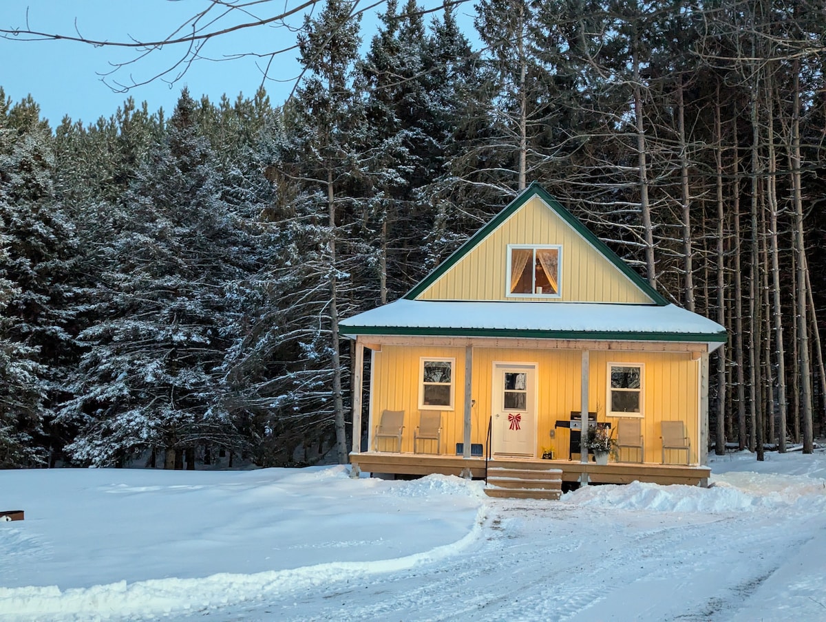 Don't miss your chance to stay at this unforgettable top rated cabin! You're surrounded by pristine wilderness. You’ll have privacy, and access to trails. In the heart of Madawaska Valley, you are close to toboganning, beaches, lakes, boating, golfing, xc skiing and a stone's throw from Algonquin Park. This handmade cabin is made from logs and timbers that came from the property and is equipped with hot running water, TV and movies, beautiful full kitchen with stove and fridge, full bathroom.