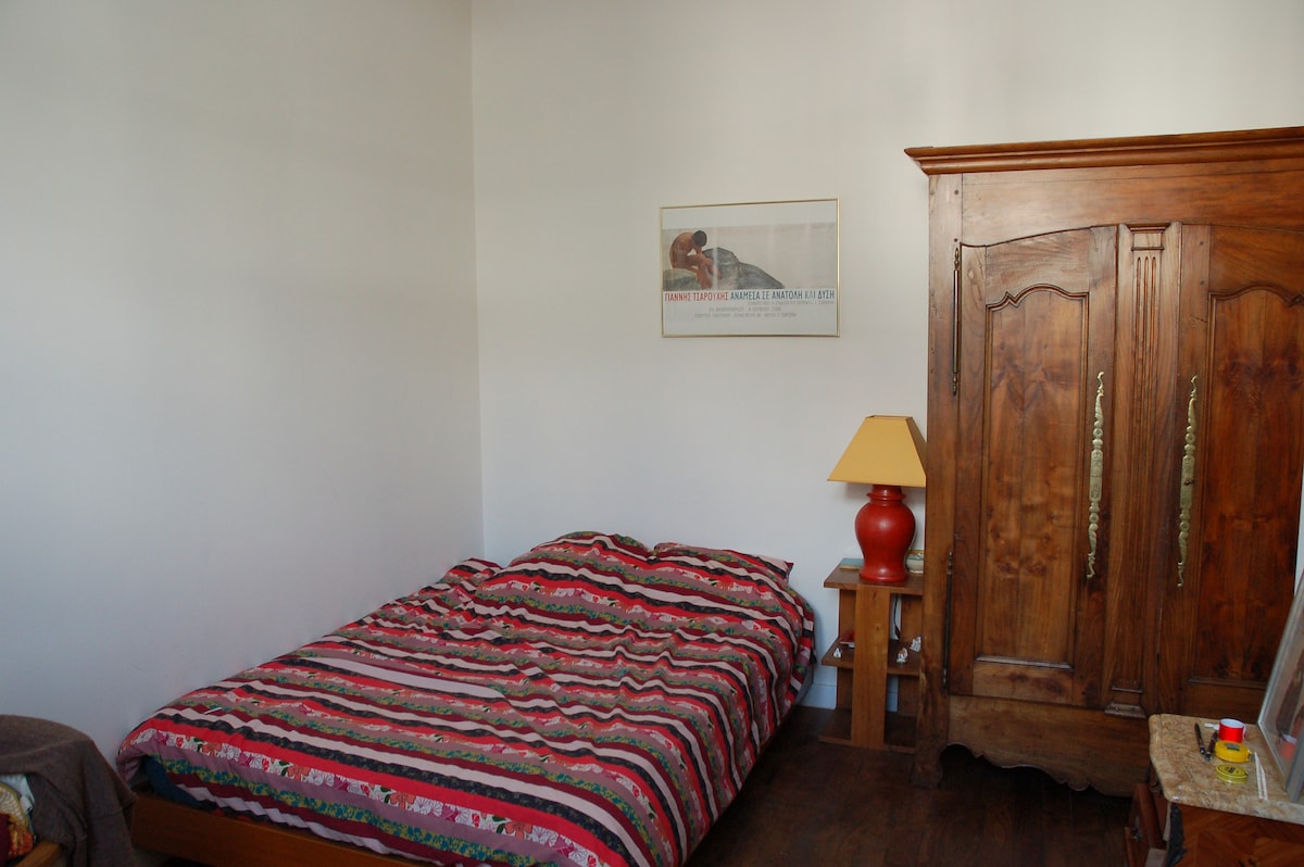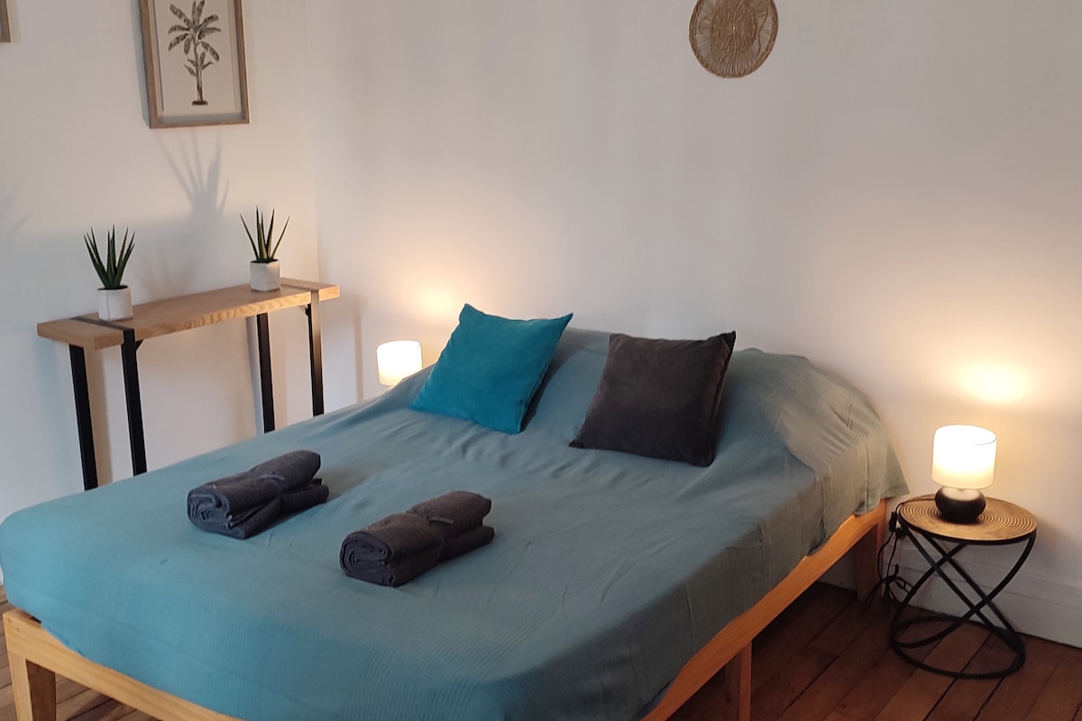 Charming apartment located in an old townhouse, nestled in a quiet residential neighborhood. Tucked under the roof (on the 3rd floor without an elevator), it features all amenities (bathroom, toilet, kitchenette) and a private entrance. Bathed in natural light, this bright and soothing space offers a warm and welcoming atmosphere, with comfortable furniture, harmonious tones, and is child-friendly.
