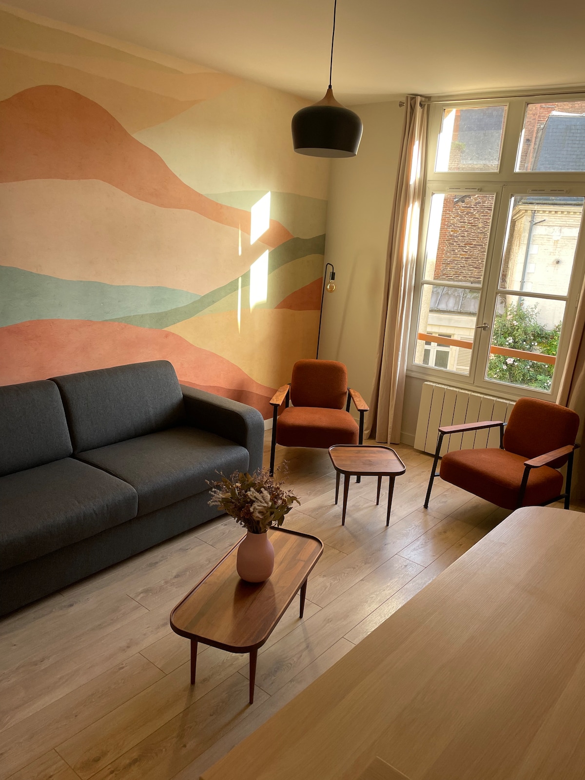 Séjournez en coeur de ville dans cet appartement atypique et calme (entièrement sur cour) avec sa terrasse sur le toit. Le logement entièrement rénové par architecte d'intérieur est un mélange du charme vintage et du confort moderne. Vous serez à deux pas du métro République et des Halles Centrales et à une courte distance de marche de tout ce que Rennes peut vous offrir. Grand choix de sorties et de délicieux restaurants à proximité immédiate.