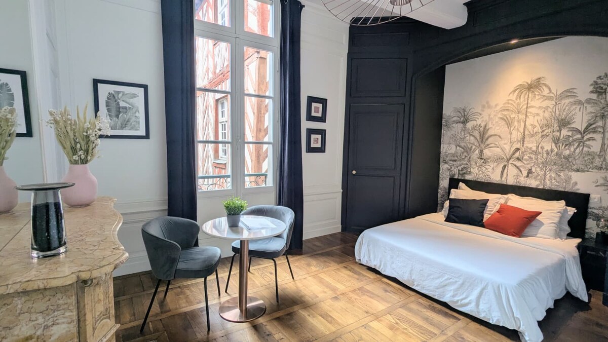 En plein centre de Dinan, laissez-vous transporter par l’élégance de la Rome Antique. Détendez vous dans une suite haut de gamme avec balnéo privative 🛁. Profitez du confort d'un lit queen size avec literie hotelière 🛏️, d’une cuisine équipée, d’une TV connectée avec Netflix, du WiFi fibre et d’une terrasse intime. À deux pas de la Tour de l’Horloge et du pittoresque Jerzual. Parkings, Restaurants et commerces à proximité immédiate. Tout est réuni pour une escapade romantique inoubliable ❤️.