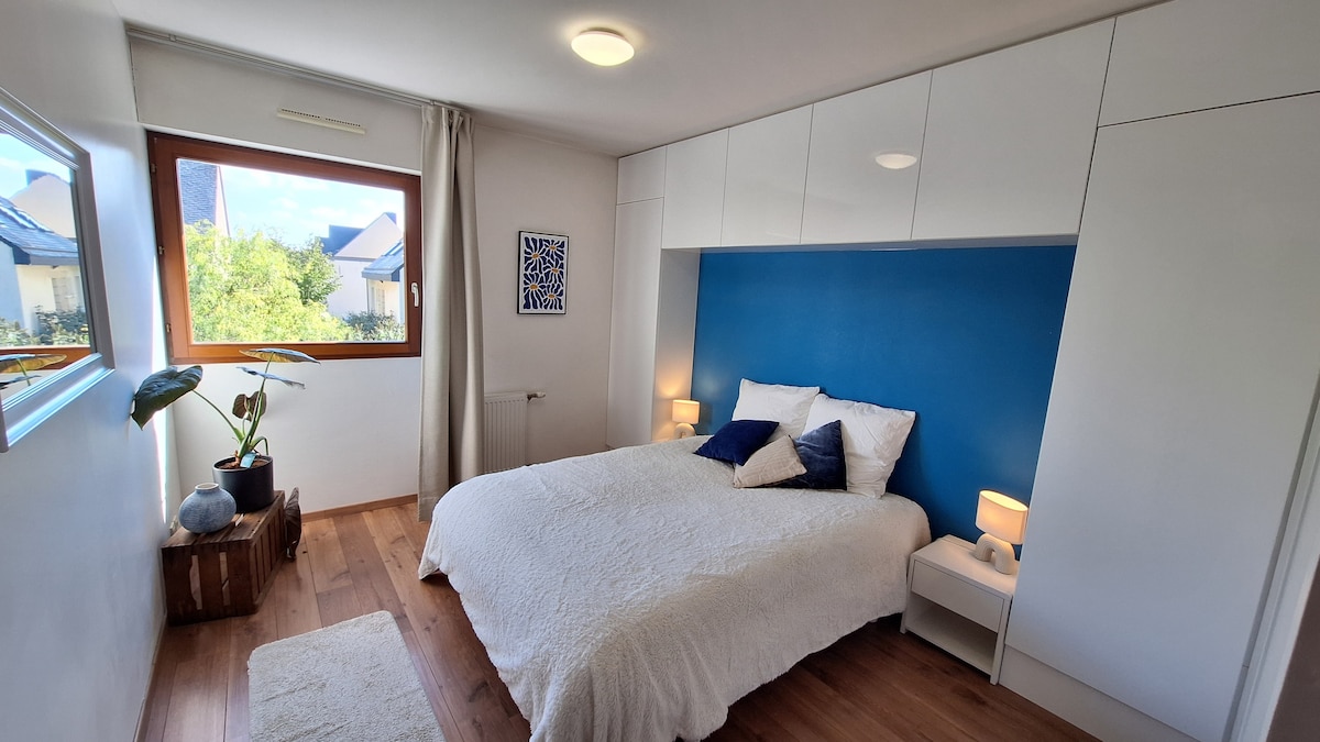 Charming Breton countryside house, formerly a cider house, located next to Rennes's state forest. Perfect for enjoying nature while staying close to the city. Independent cottage separate from the main house with a private entrance for vehicles. Opposite a pony club and an organic farm. 7 mins from the ring road and 20 minutes from Rennes city center. 6 minutes from the train station, supermarkets, and shops in Betton. Fougères Castle: 30 mins. Mont Saint-Michel: 50 mins. Saint-Malo: 60 mins.