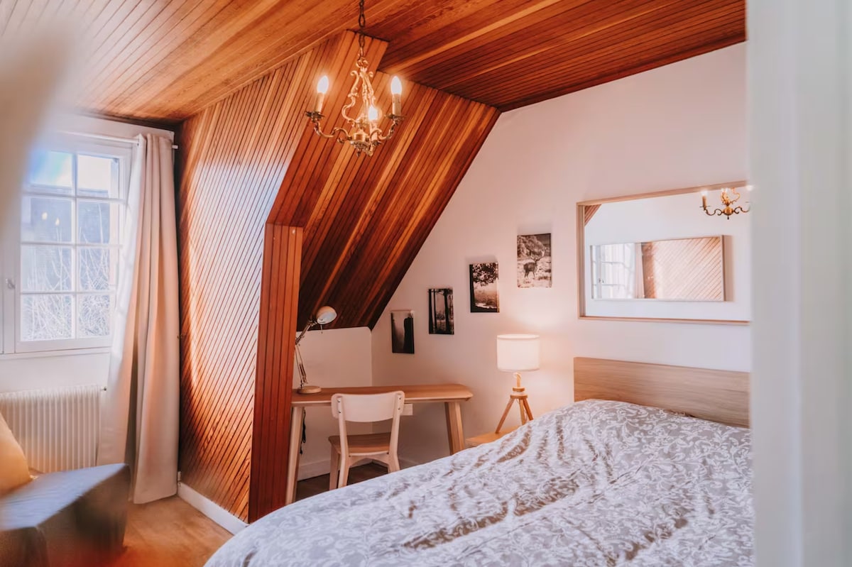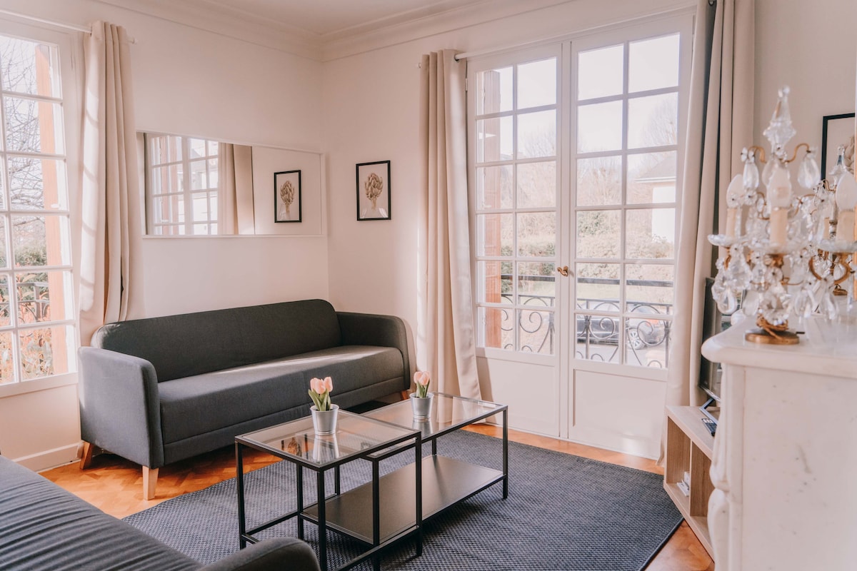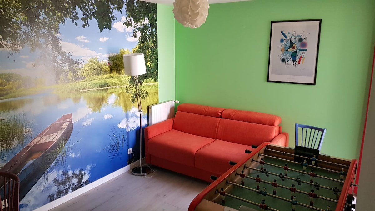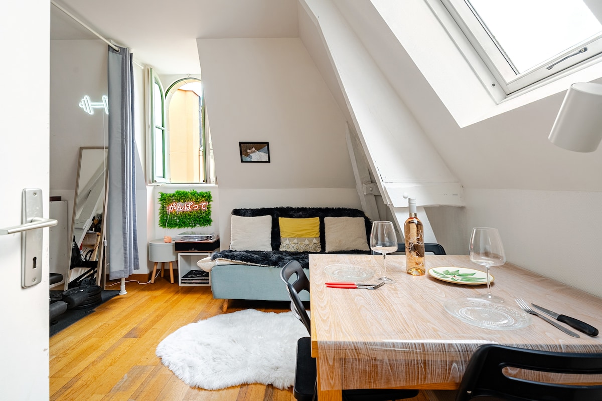 Profitez d’un appartement calme, élégant et très bien entretenu, au design cosy et moderne. La cuisine équipée et la petite terrasse offrent confort et praticité. Stationnement gratuit dans la rue. À proximité de boulangerie, boucherie, supermarché, etc. Le centre-ville est accessible en 7 minutes en transport, le périphérique en 2 minutes en voiture. Piscine olympique et parcs à 5 minutes à pied. Wifi rapide et fiable pour un séjour agréable.